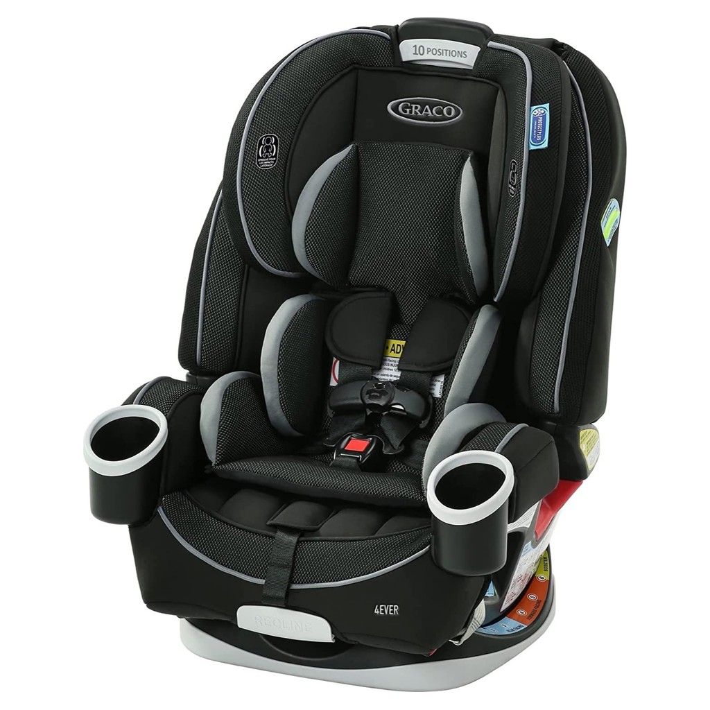 The Graco® 4Ever All-in-1 Convertible Car Seat gives you 10 years of life in one car seat. It's comfortable for your child and convenient for you because it converts from a rear-facing car seat for a 4-40 lb. toddler to a forward-facing seat with a 5-point harness for a 22-65 lb. child to a high-back, belt-positioning seat for a 44-100 lb. child to a backless, belt-positioning seat for a 40-120 lb. child