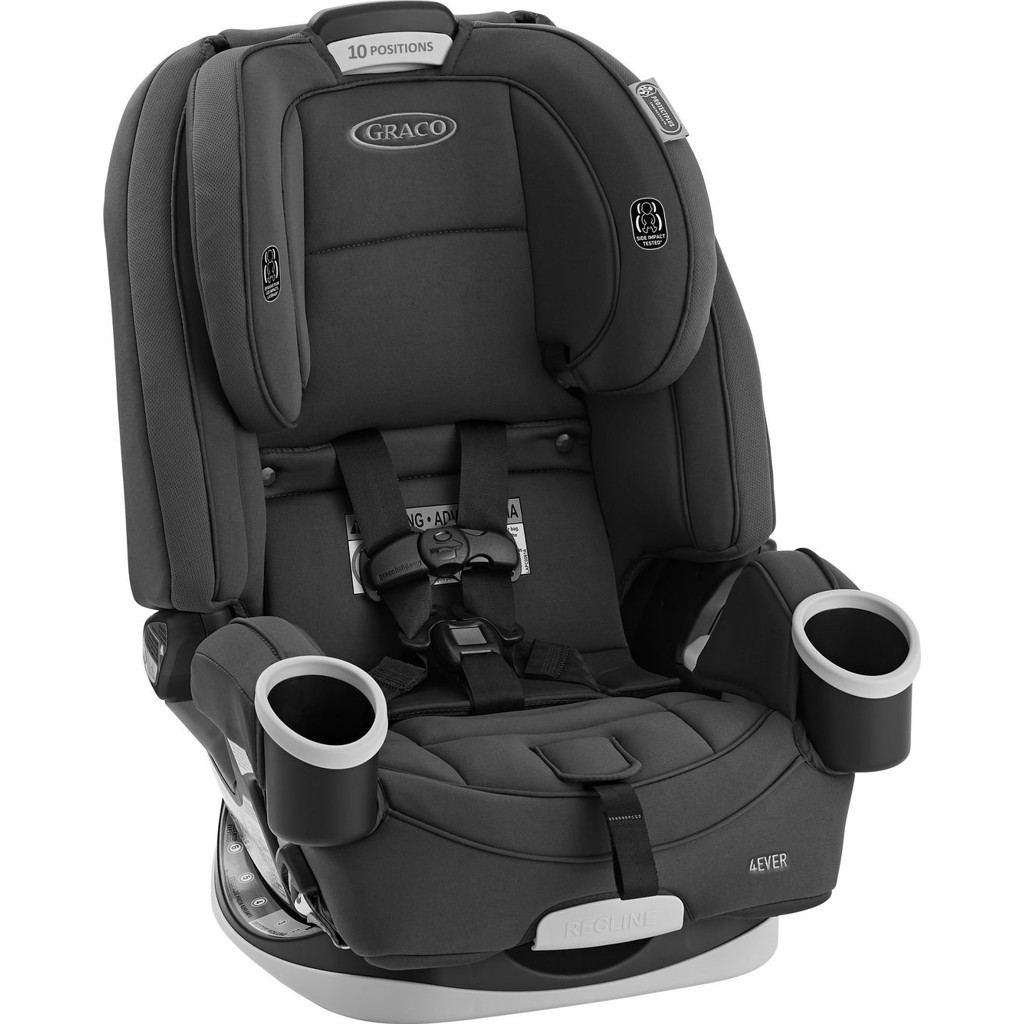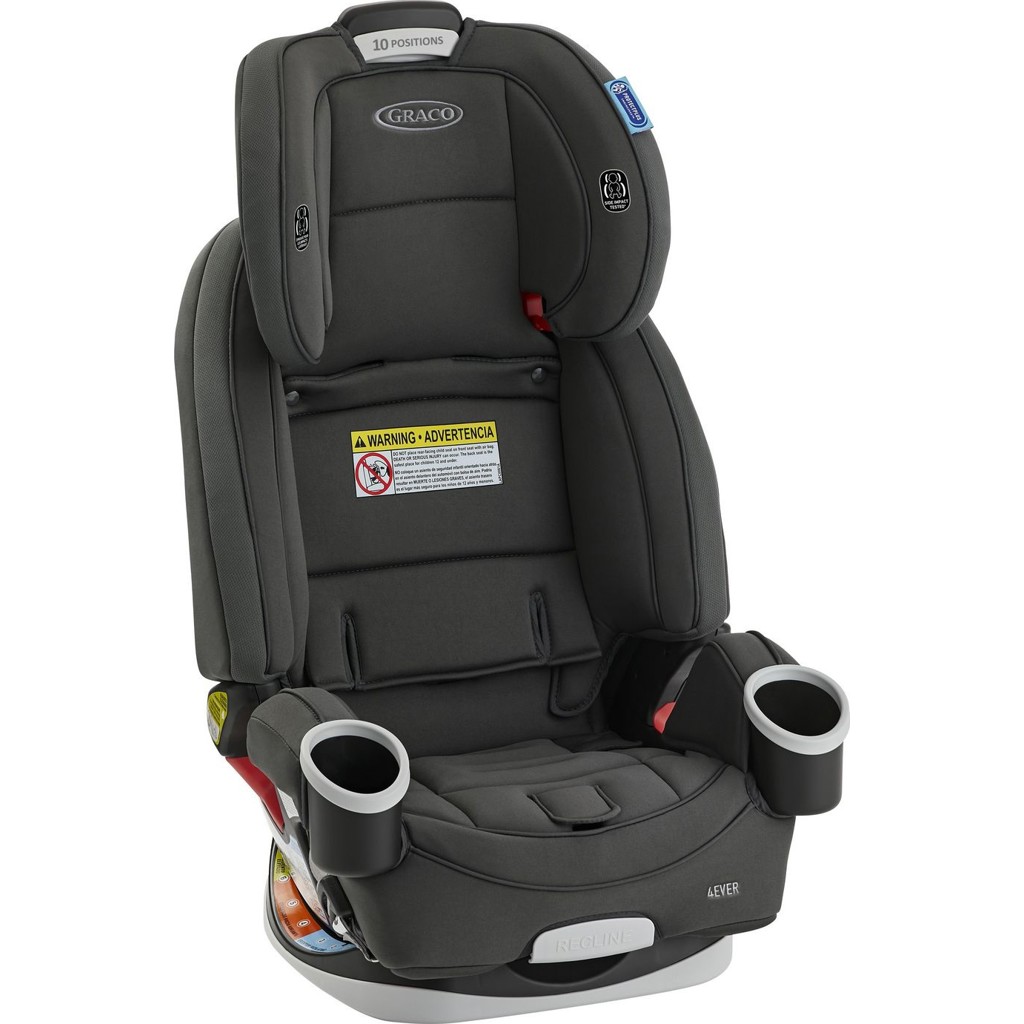Worry more about car rides with the Graco 4Ever 4-in-1 Convertible Car Seat. This car seat converts from a rear-facing car seat to a 5-point forward-facing harness seat, a high-back belt-positioning booster and a backless belt-positioning booster. The Graco 4Ever 4-in-1 Convertible Car Seat has one-hand adjustable features that make it parent-friendly and plush inserts make it comfortable for your little one.