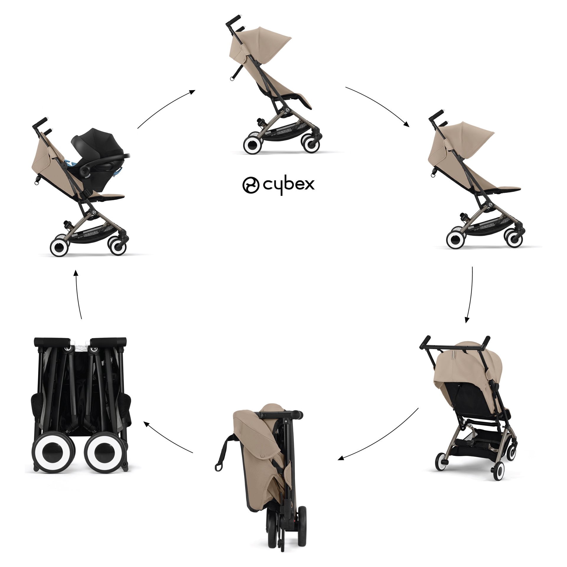 With one of the smallest folds in the world, the Libelle folds into a space-saving package that's carry-on compliant for easy storage on planes, trains and automobiles, and can be used as a travel system with any award-winning CYBEX infant car seat.