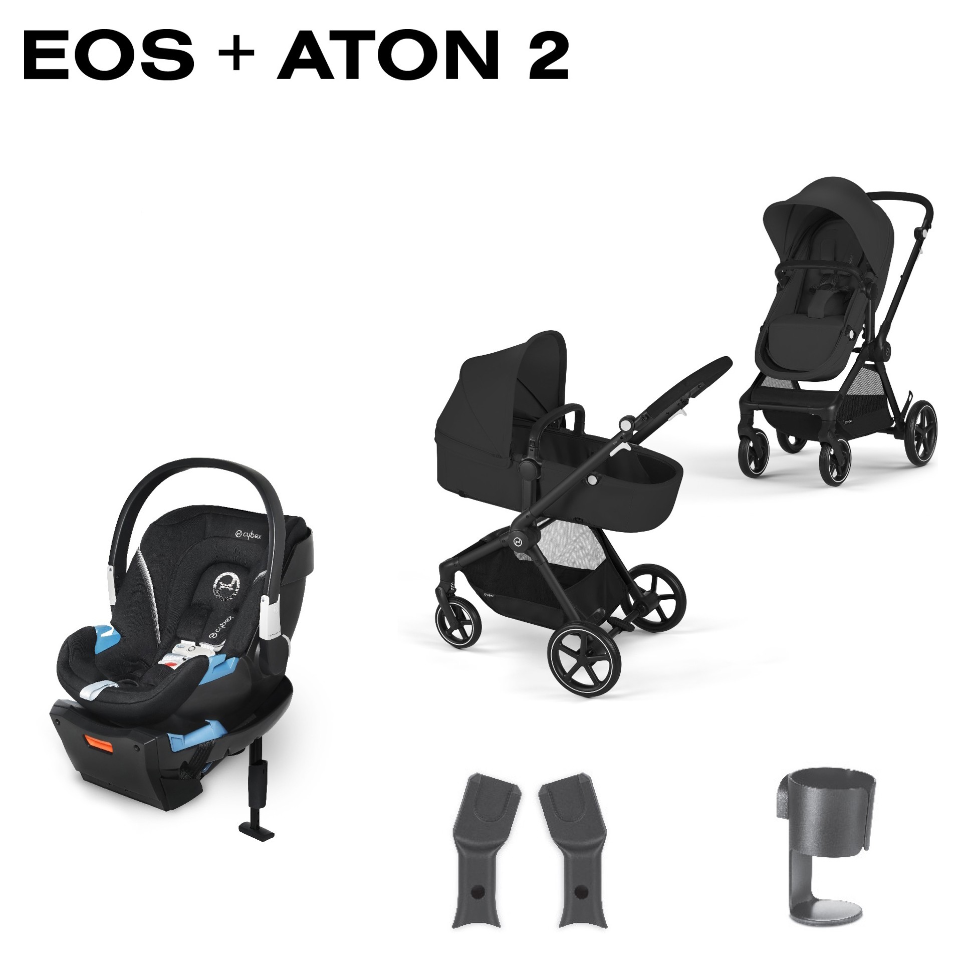 The CYBEX Eos stroller + Aton 2 infant car seat is your all-in-one travel solution. The Eos features a 2-in-1 seat suitable for newborns and toddlers. Combined with the Aton 2 with its advanced safety features, it's the ideal travel system for all family outings.