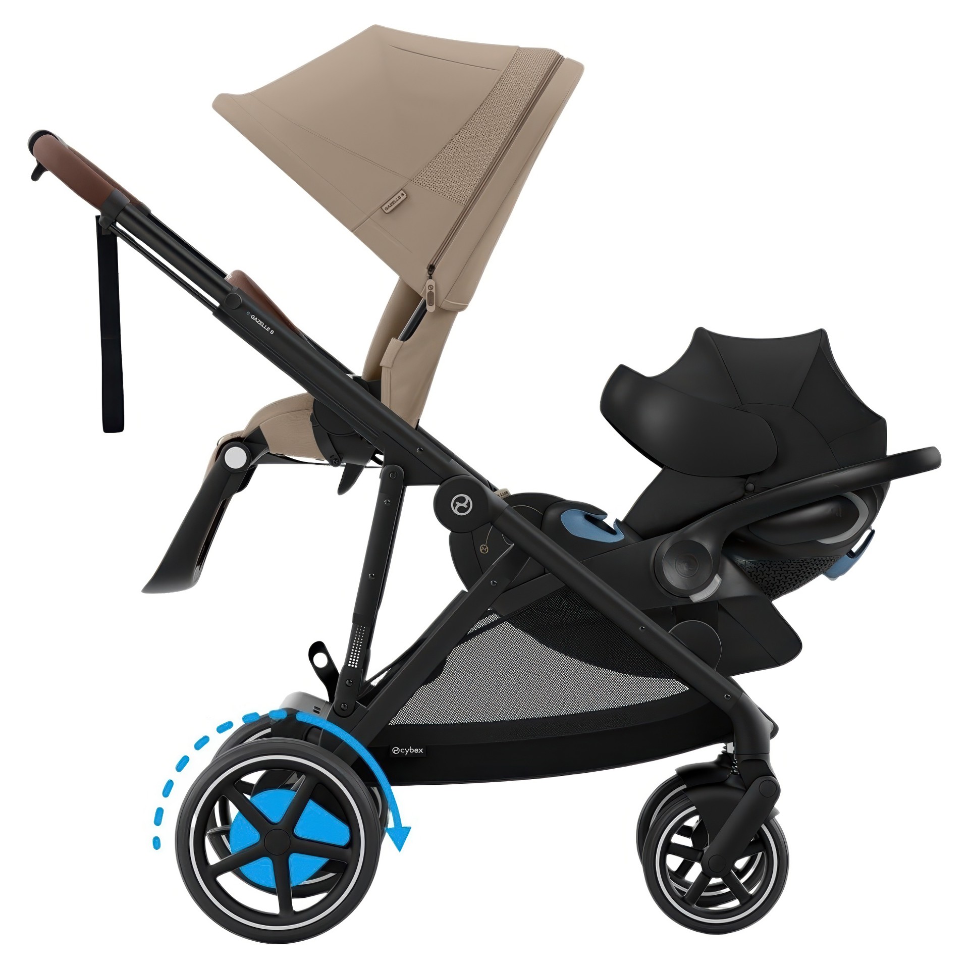 20+ CONFIGURATIONS: Add a second Gazelle S Seat unit, Gazelle S Cot, or any CYBEX Infant Car Seat to meet your needs. (sold separately)