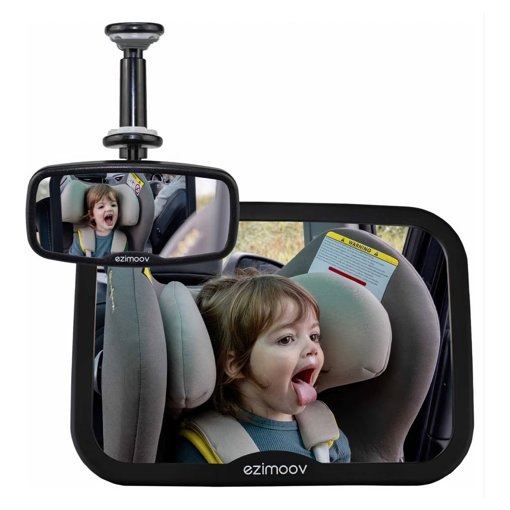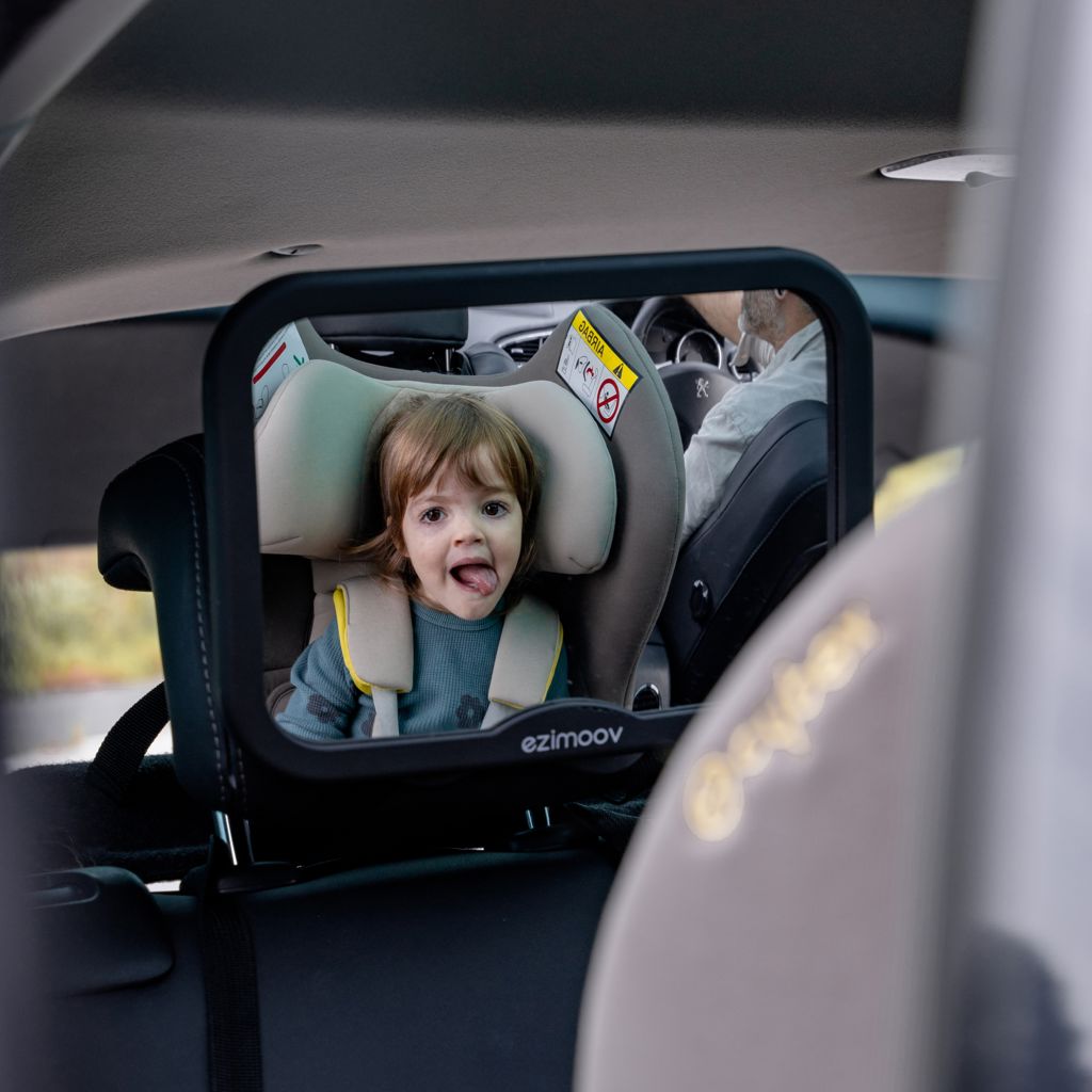 The Ezi mirror pack is an extra large car rear-view mirror to be placed on the back seat of your car, combined with a front rear-view mirror: perfectly adapted to rear-facing car seats, it will allow you an easy and complete view of your child without having to to turn around.