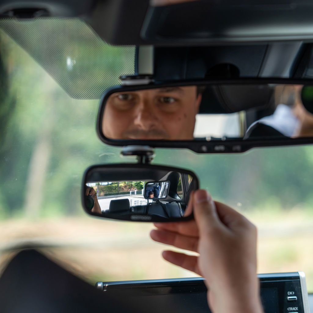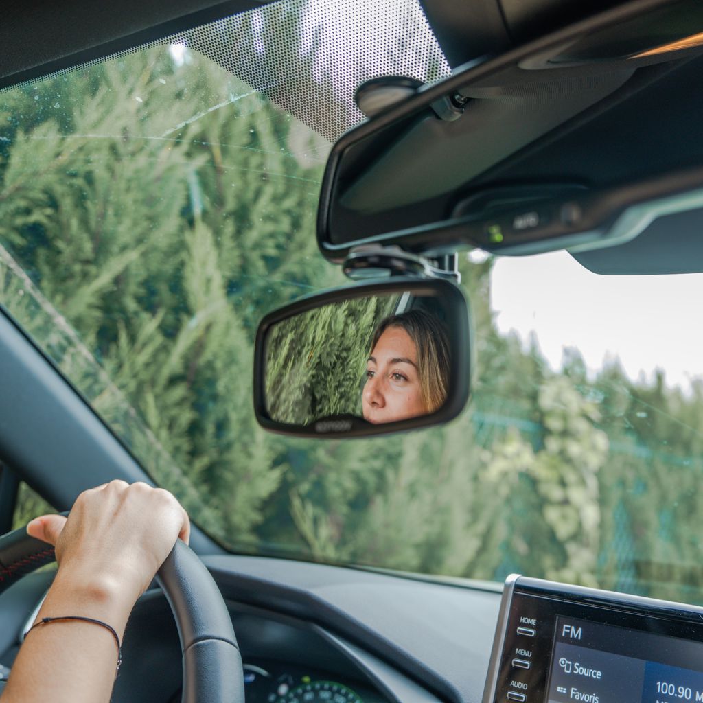 Supervise your child with the EZIMOOV front mirror without changing the position of your car's front mirror. Monitor your child from your driving position easily and safely.