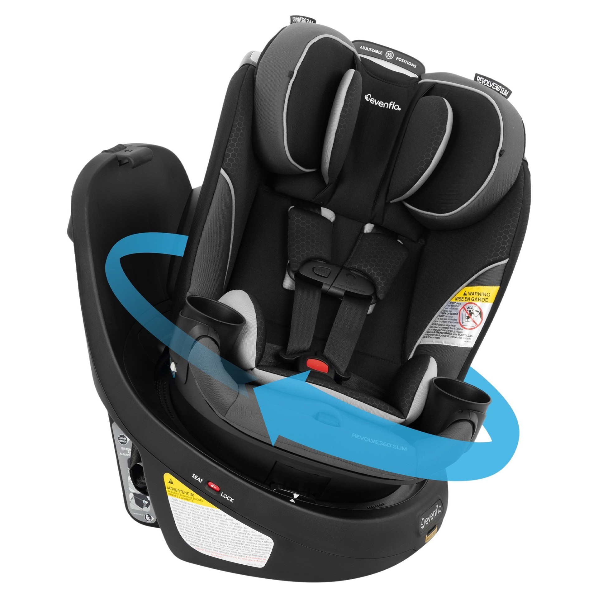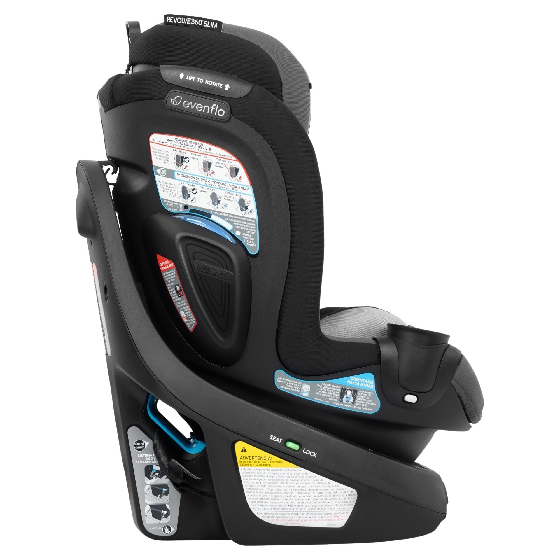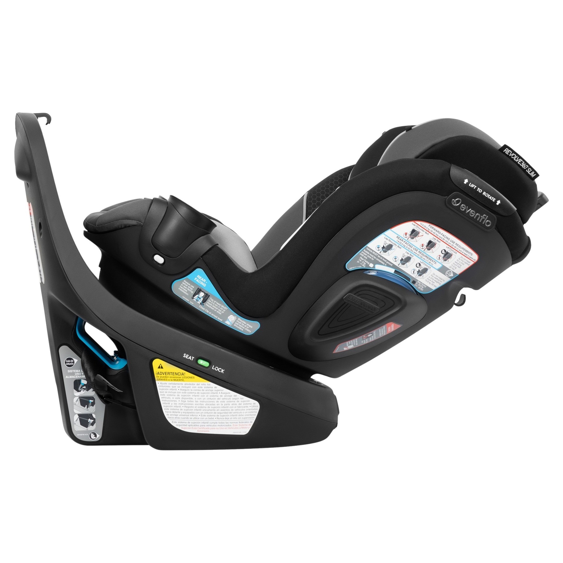 At Evenflo, we go beyond government standards to create truly safe car seats. The Resolve360™ Slim meets or exceeds all applicable federal safety standards. It has been tested for structural integrity at energy levels approximately twice the federal crash test standard and has undergone side-impact, rollover, and high-temperature testing.