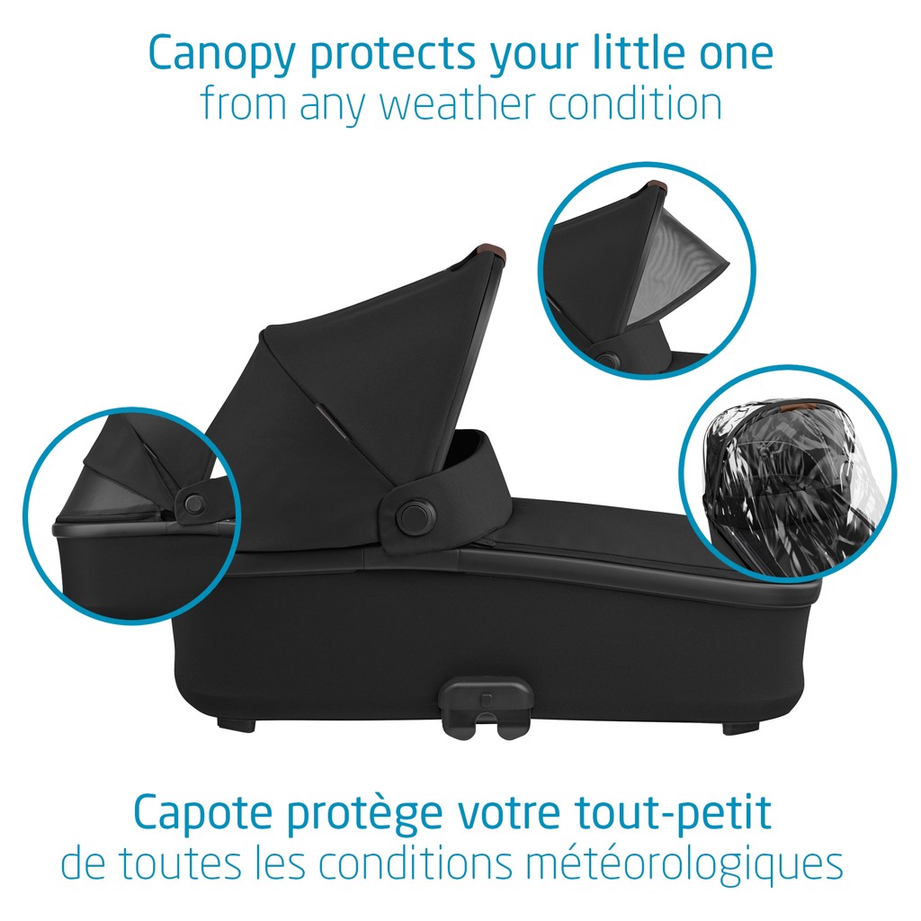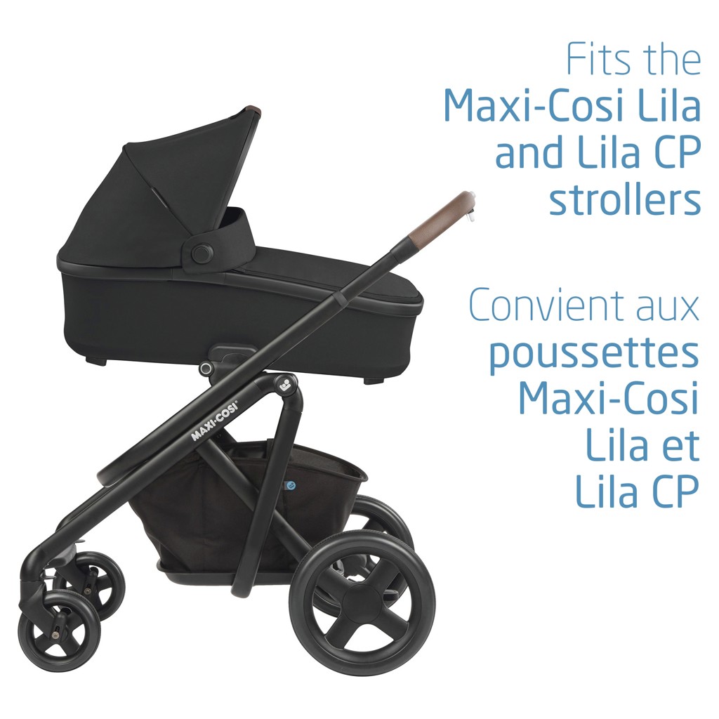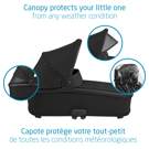 The cover and hood protect baby from the sun and rain. The simple 2-click system allows you to attach the Oria to the frame of a Maxi-Cosi Lila or Lila CP stroller with ease.