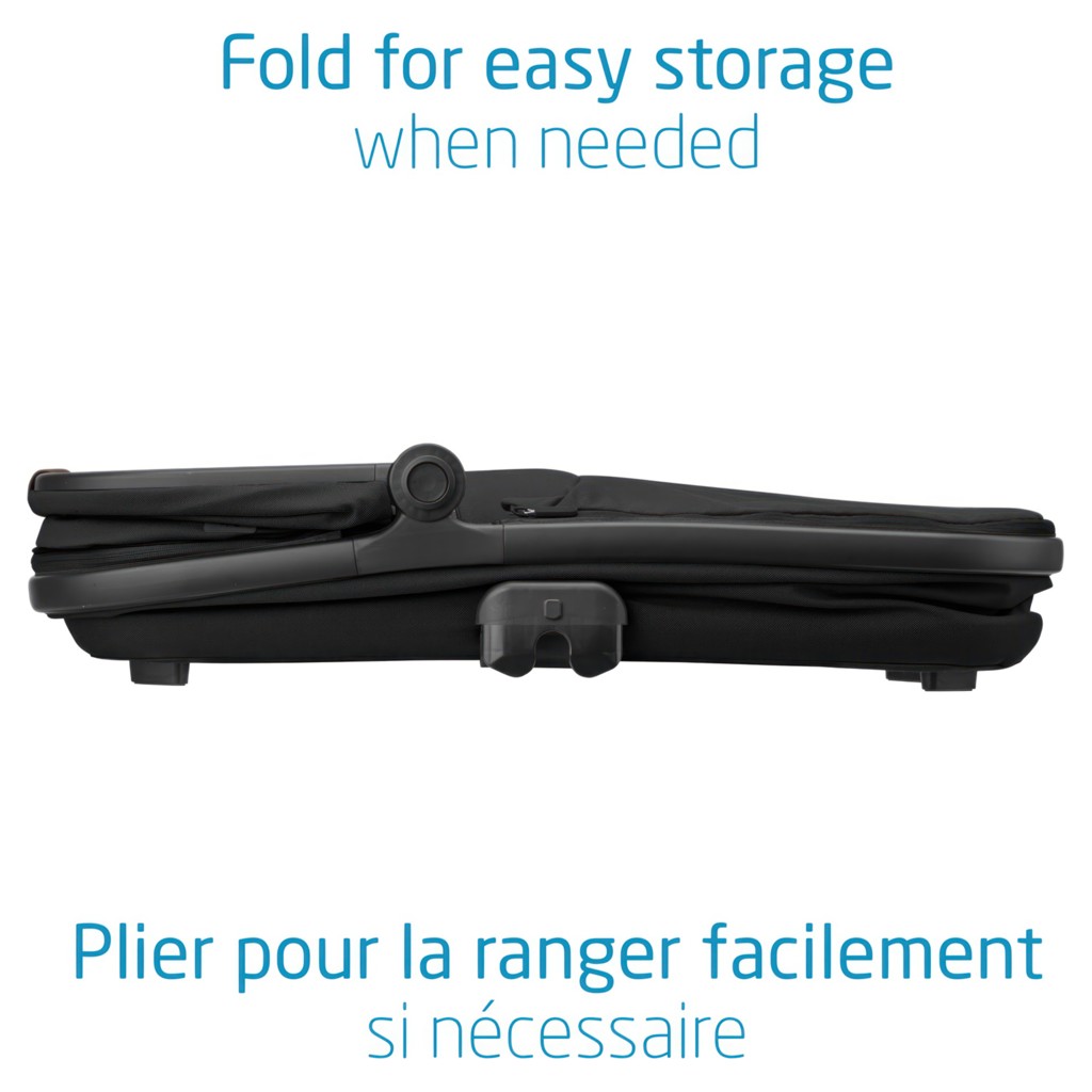 The Oria can be folded flat for easy storage. This product is not intended for sleeping. To be used only with a stroller.