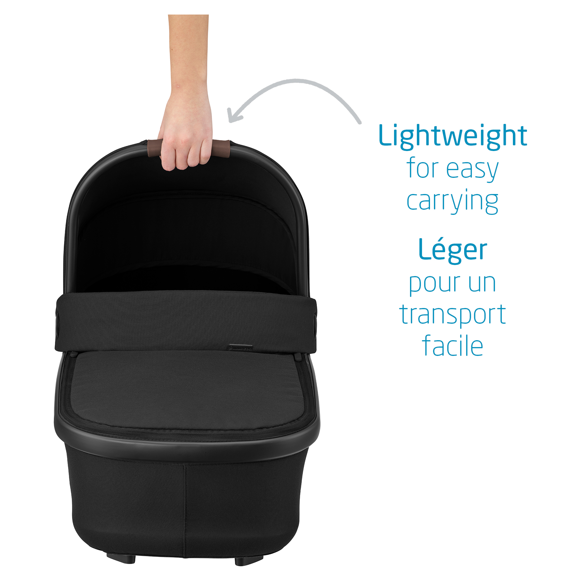 The Oria is spacious, features an ergonomic mattress and can be easily attached to and removed from the stroller thanks to its lightweight frame and integrated carry handle. Perfect for outings in comfort, the Oria offers your child a spacious, comfortable place to lie down wherever you go.