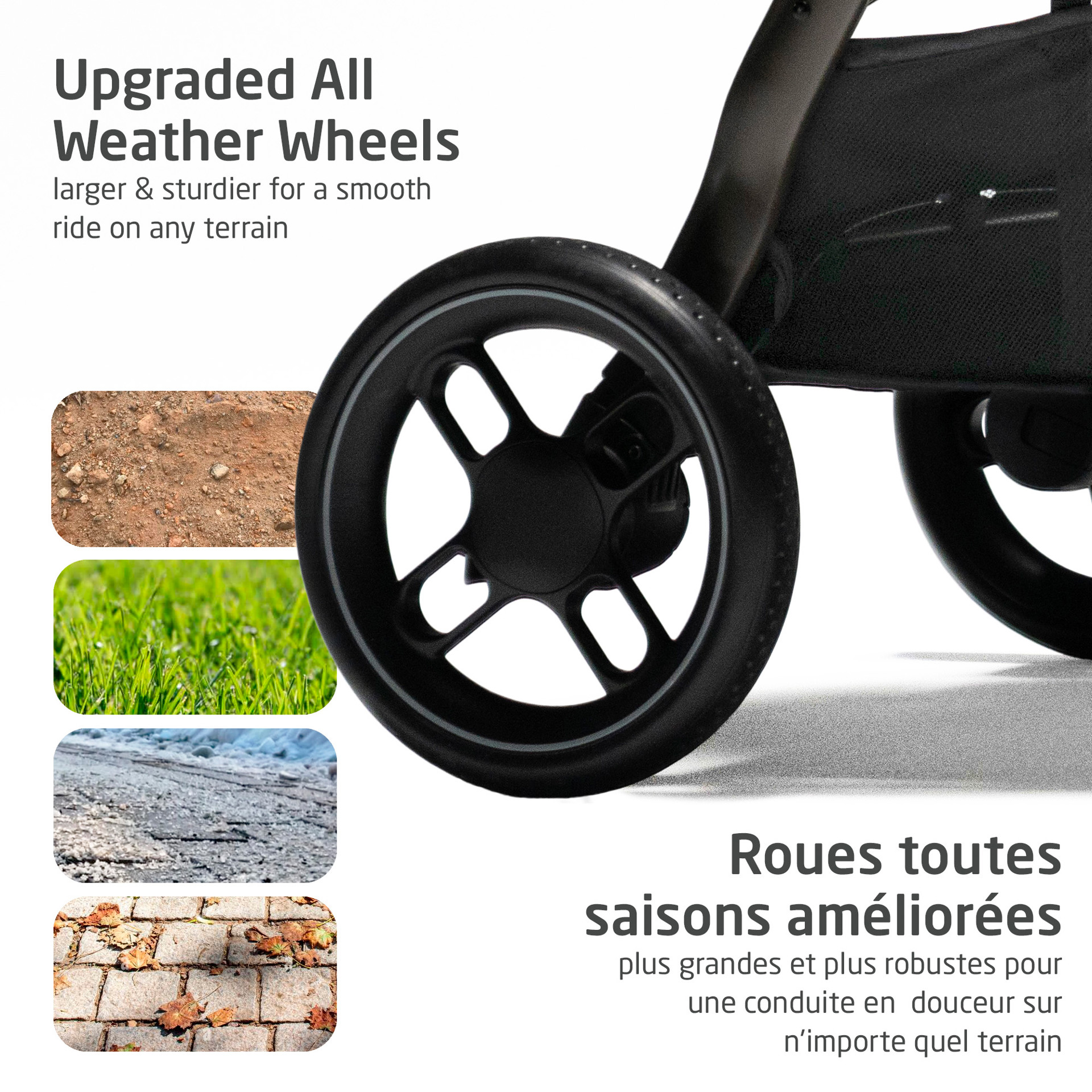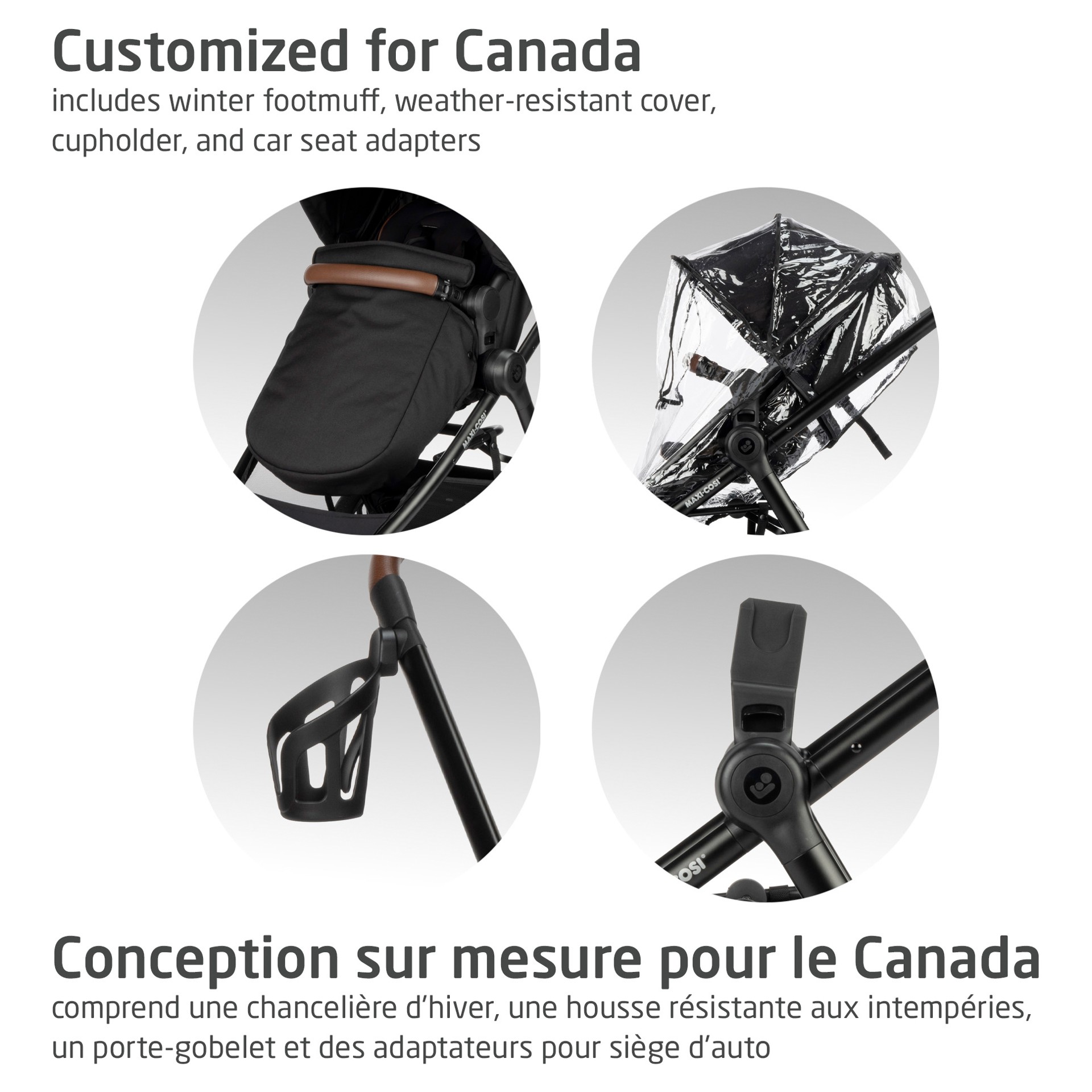 Designed for Canada's diverse terrain, it features larger, improved wheels, an insulated bassinet cover and a weather cover for year-round protection.