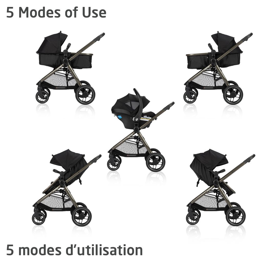The Maxi-Cosi Zelia Luxe 5-in-1 modular travel system adapts as your child grows, providing seamless transitions from newborn to toddler.