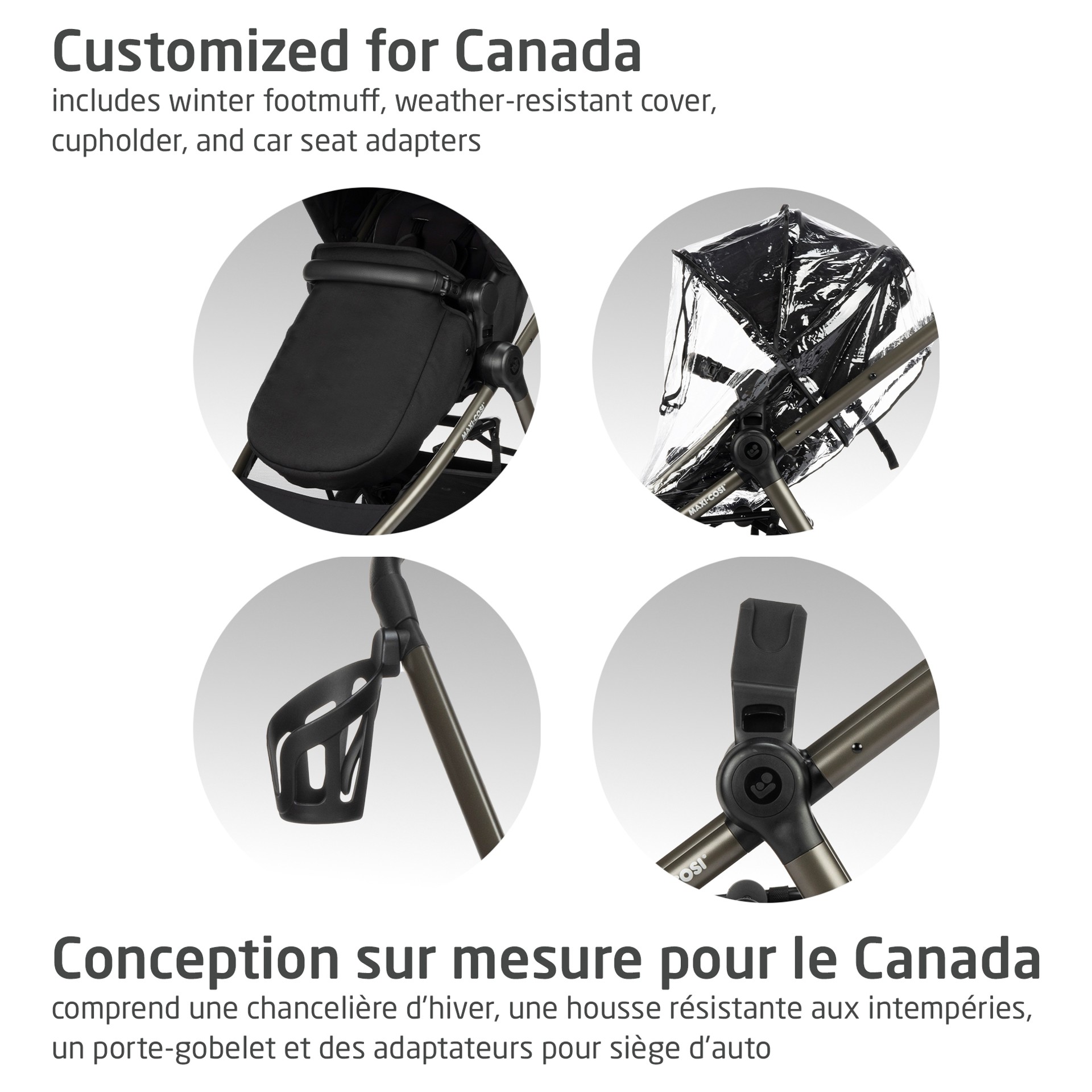 Designed for Canada's diverse terrain, it features larger, improved wheels, an insulated bassinet cover and a weather cover for year-round protection.