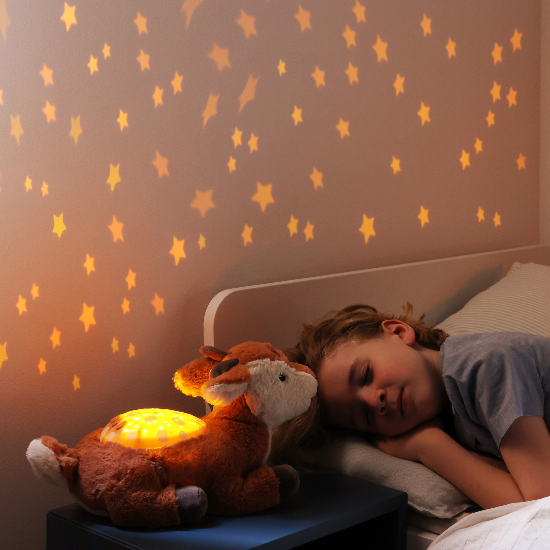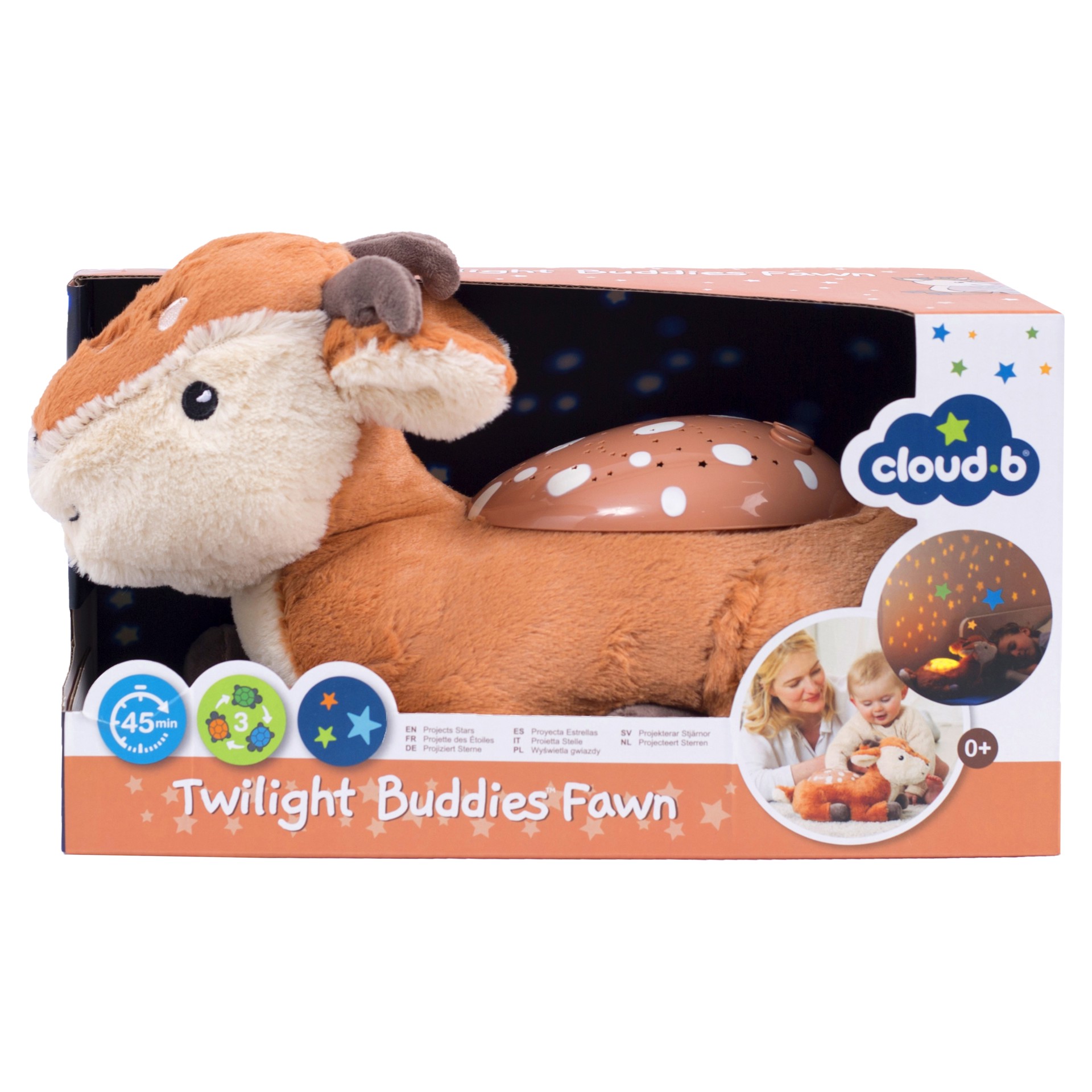 Twilight Buddies™ – Finley Fawn is a soft, plush companion that helps ease children's fear of the dark by projecting a starry night sky onto bedroom ceilings and walls. Hidden within the soothing projection are the moon and three constellations!