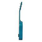 Painted in blue and brick colours, it is illustrated with a panther design with feathers arranged around the sound hole.