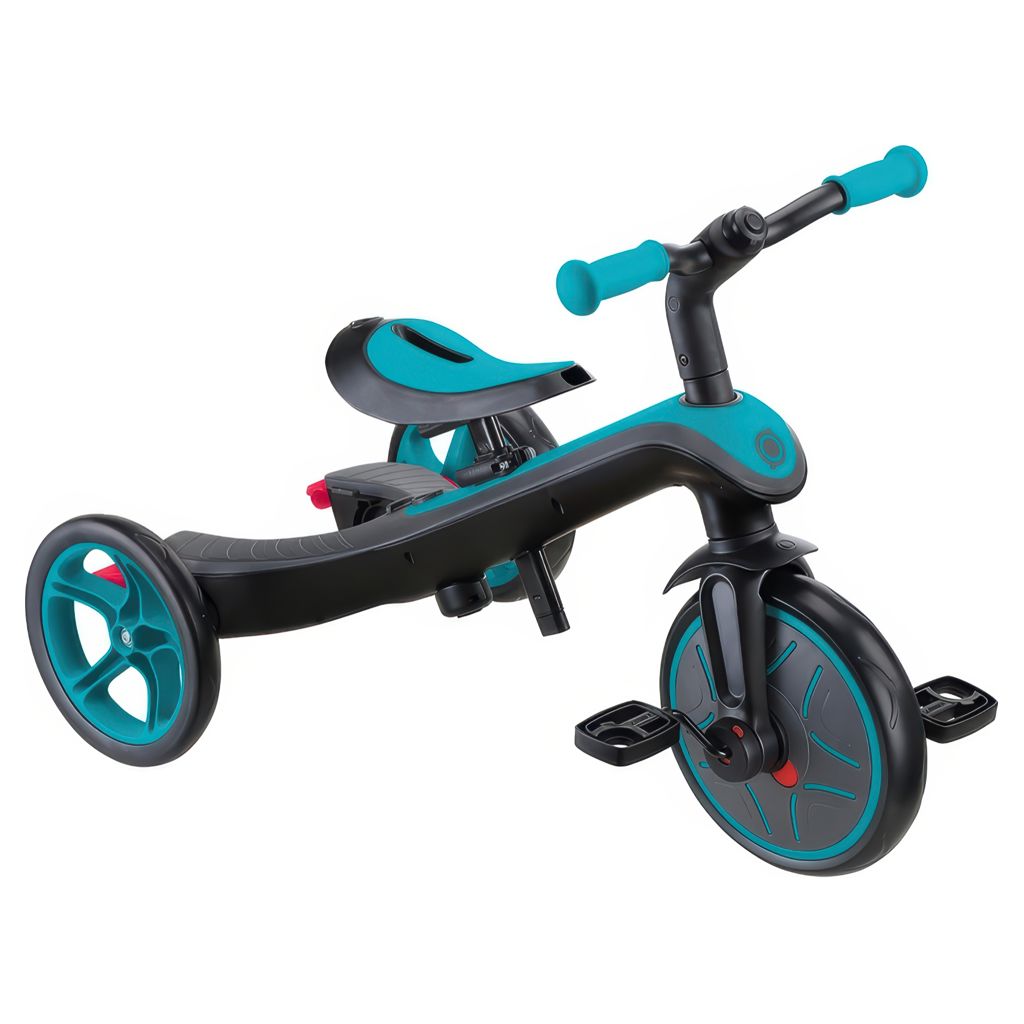 EXPLORER TRIKE 4in1 comes with a 100% tool-less design (no tools needed to transform!), a patented wheel mechanism, a 2-height adjustable parent handle, 2-height adjustable saddle, high-back seat, removable footrest, EVA foam wheels, and smart pedal storage to provide even more functionality!