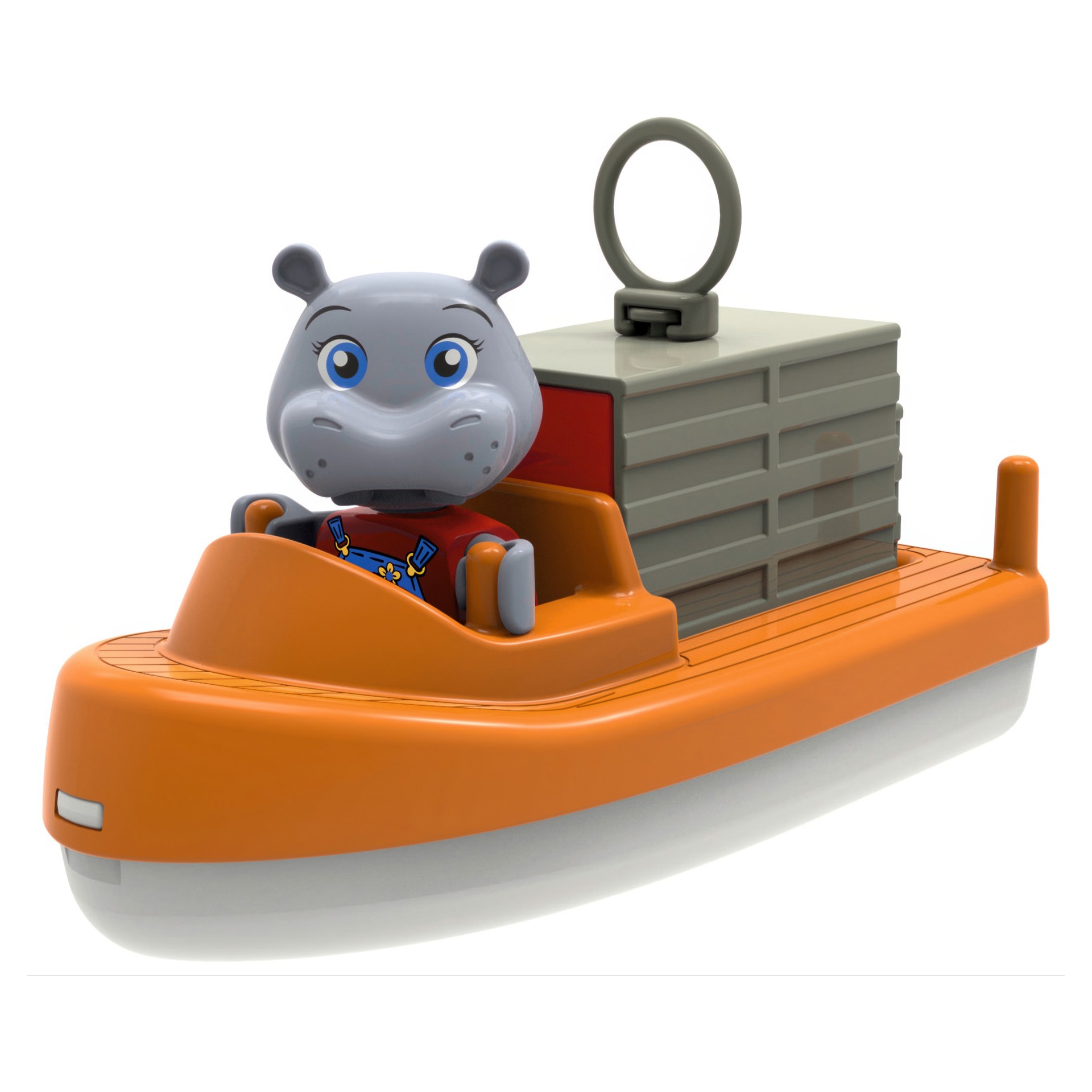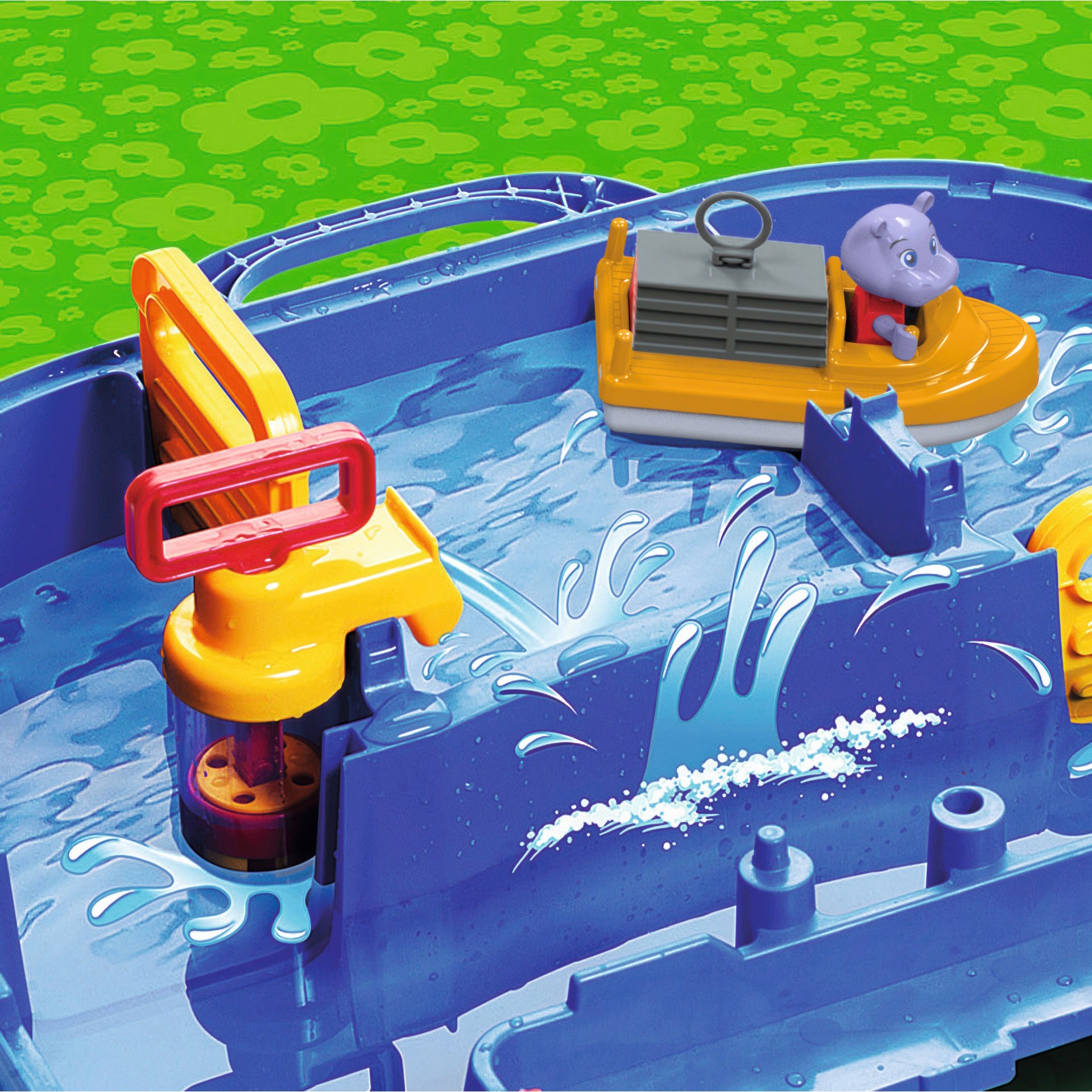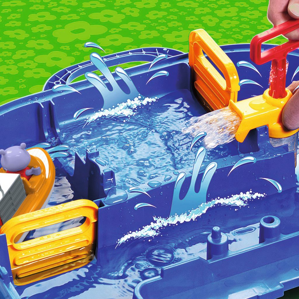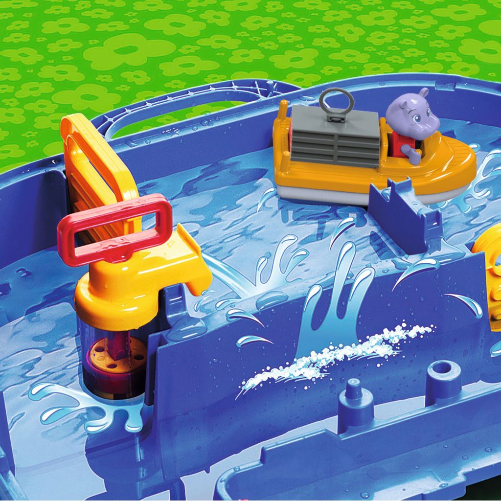 Let Wilma the hippopotamus take the container boat on a journey through the popular lock system using the pump.