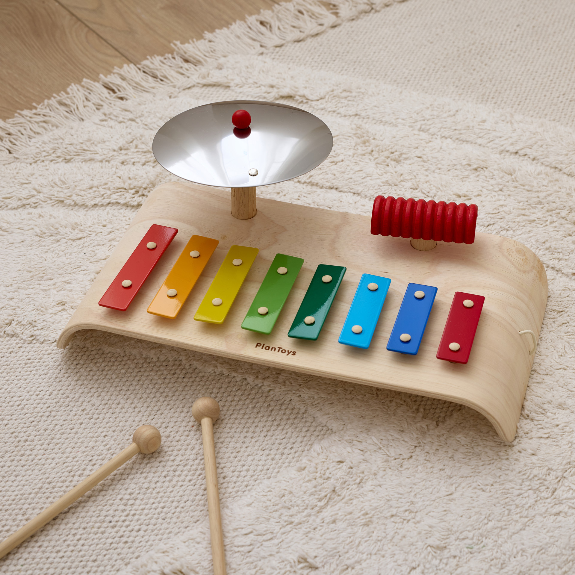 This music set comes with melody xylophone; cymbal and guiro that helps enhance hand-eye coordination and boost concentration skill.