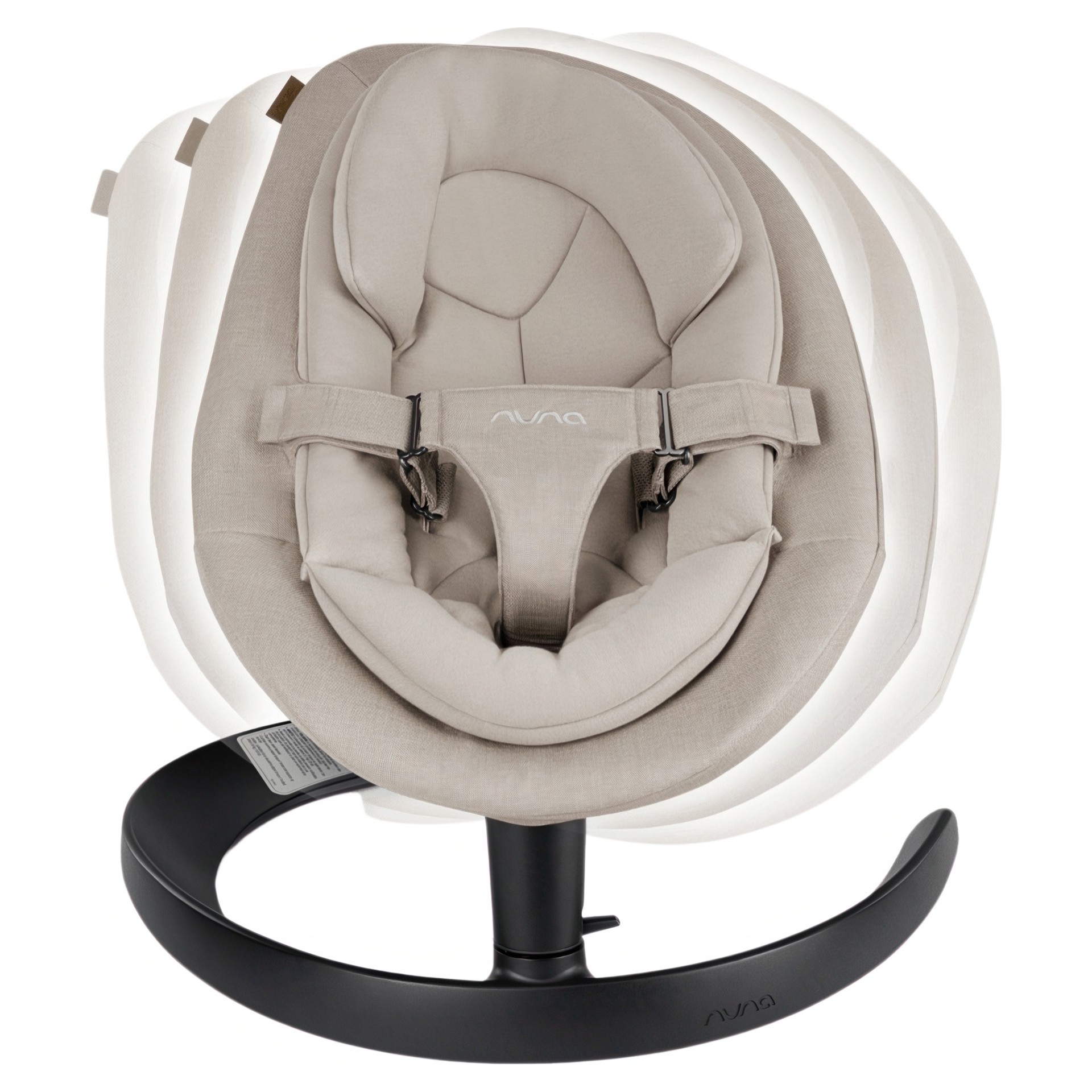 Movement lasts up to 2 minutes, initiated by a simple push; inspired by the swaying movement of a leaf as it falls from a tree. Works without batteries, electricity or motors, so there's no noise pollution. Comfortable reducer in organic fabric, removable as baby grows.