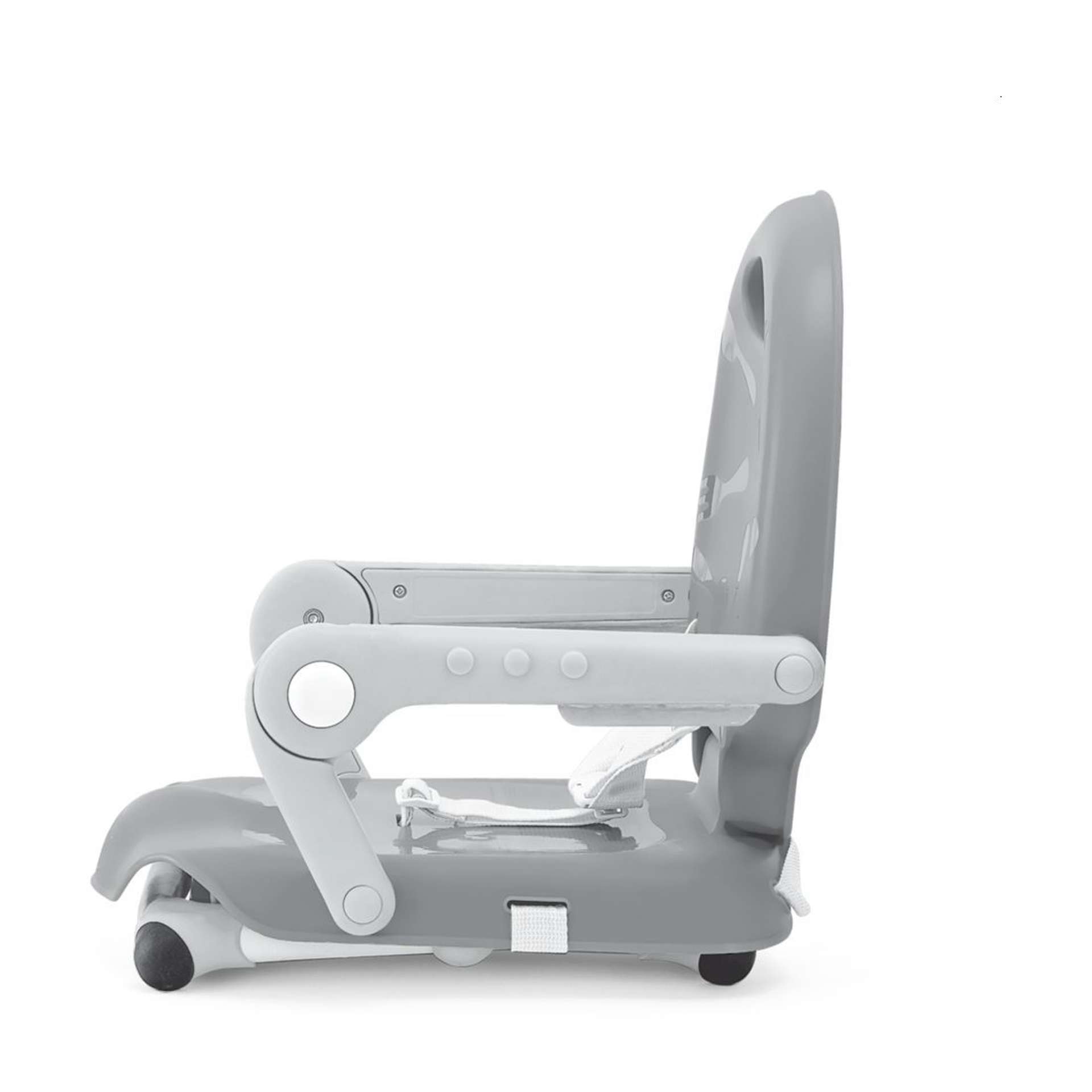 Pocket Snack features easy-to-clean surfaces, three tray positions, three height adjustments and a three-point harness. Two straps secure it to most dining chairs and rubberized feet help keep it from slipping.