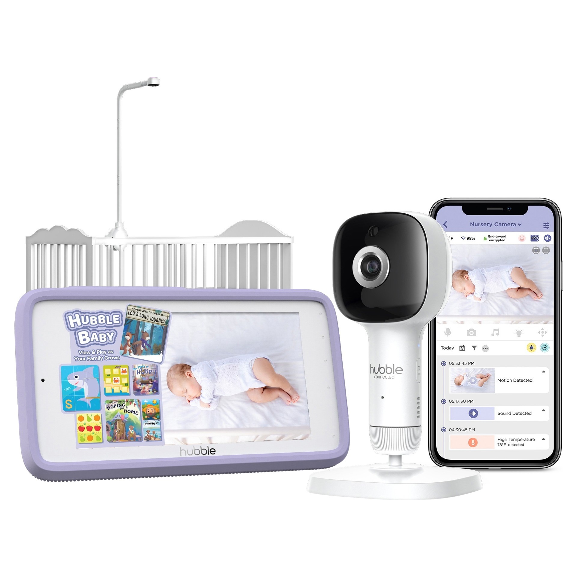Experience the game-changing Hubble Connected SkyVision AI Pro Smart Baby Monitor, designed to deliver unrivaled safety, convenience, and entertainment for both babies and parents.