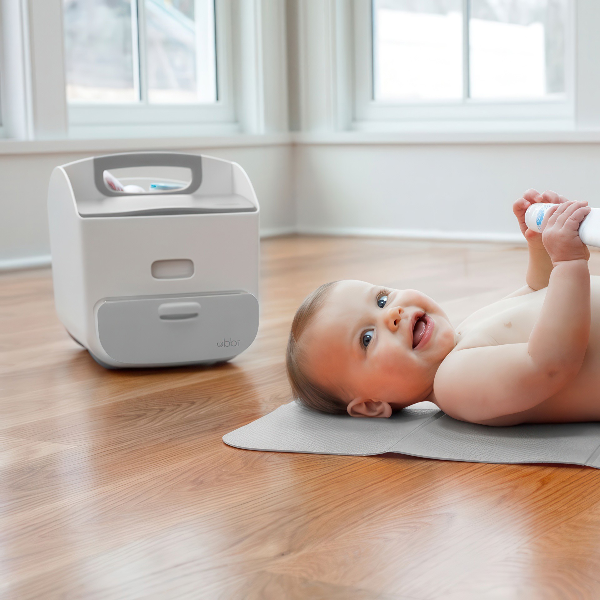 The Ubbi Diaper Caddy offers parents convenience, durability and accessibility by organizing all their diapering supplies in one portable storage unit. Made of sturdy plastic, the Ubbi Diaper Caddy features two main compartments for diapers and wipes, a drawer for smaller items and a convenient area with a comfortable, easy-to-clean changing pad.