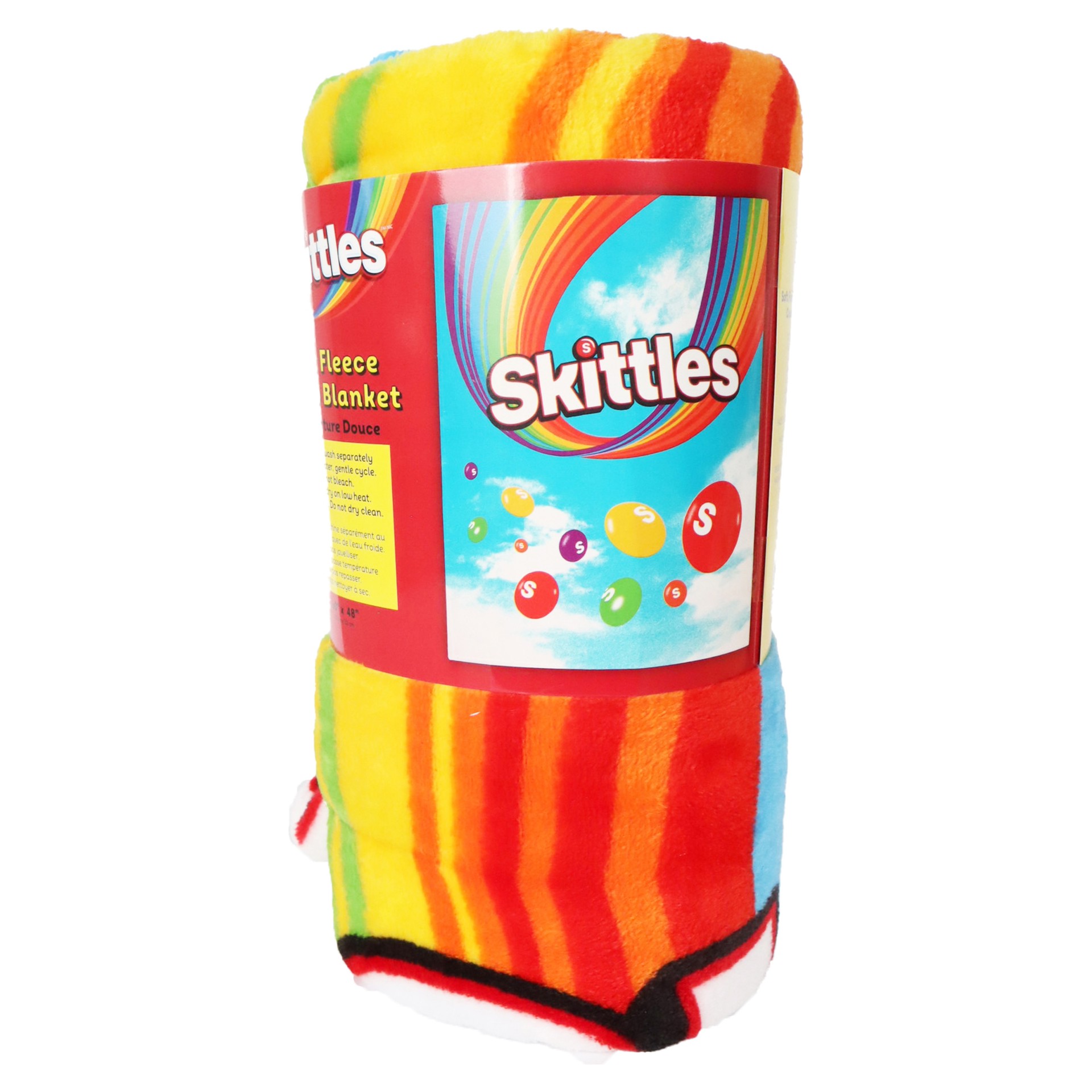 The Skittles fleece blanket brings warmth and color to your home with its cozy design and vibrant candy-inspired pattern.