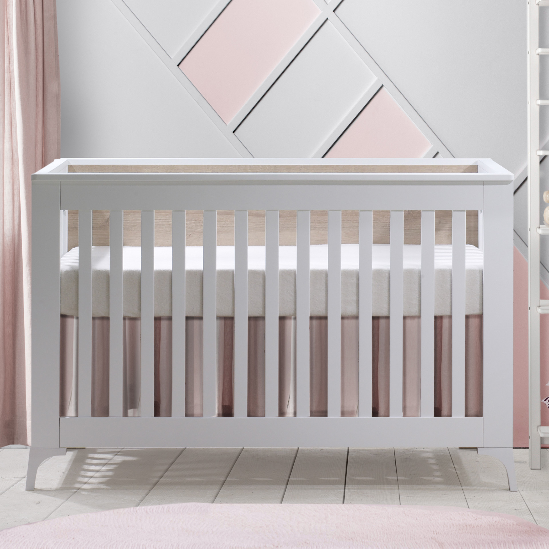 • The crib converts into a toddler bed and a daybed.