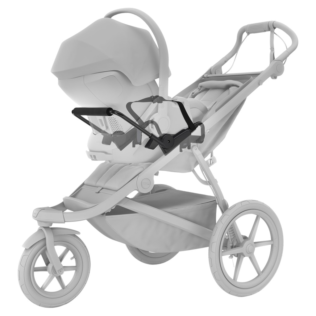 Snap-on car seat adapter compatible with Thule universal/chicco car seat models.