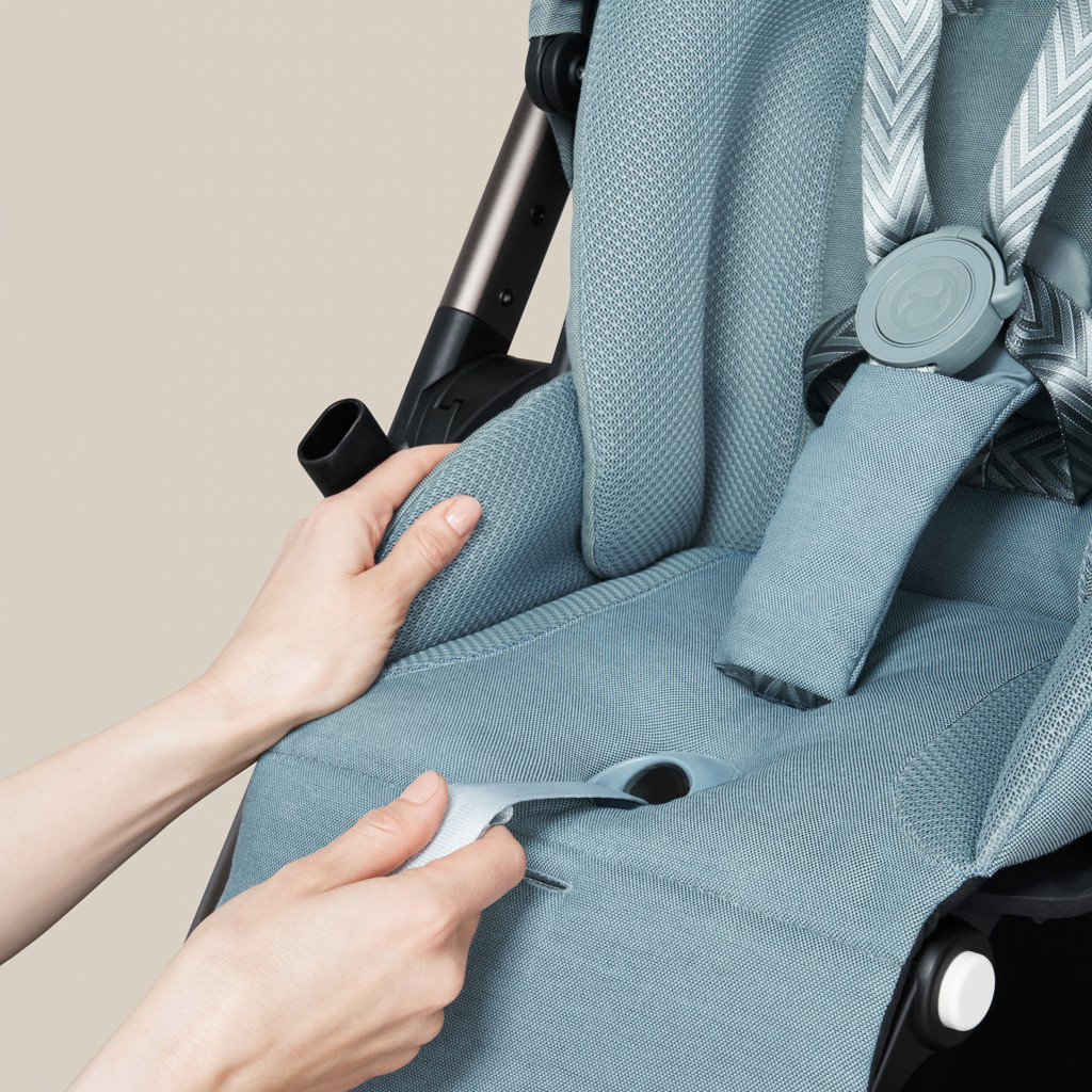 UNIQUE ONE PULL HARNESS: Helps you secure your child in the stroller in seconds, with just one hand