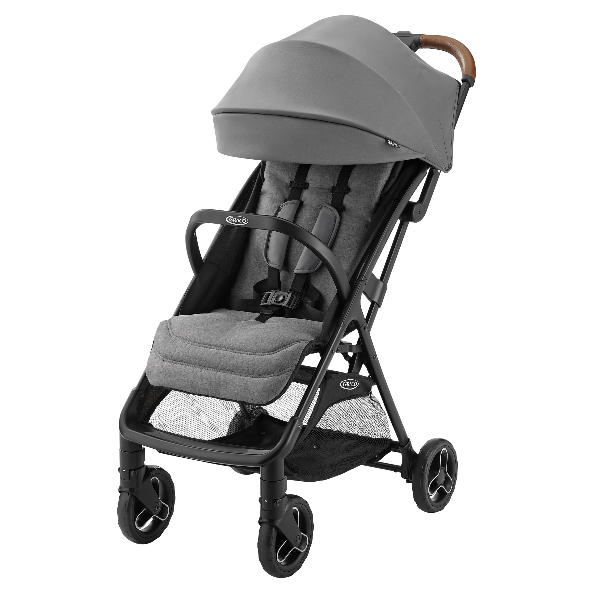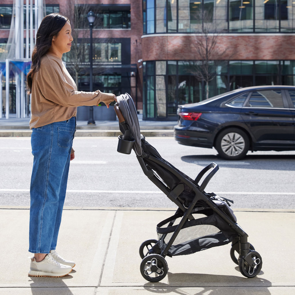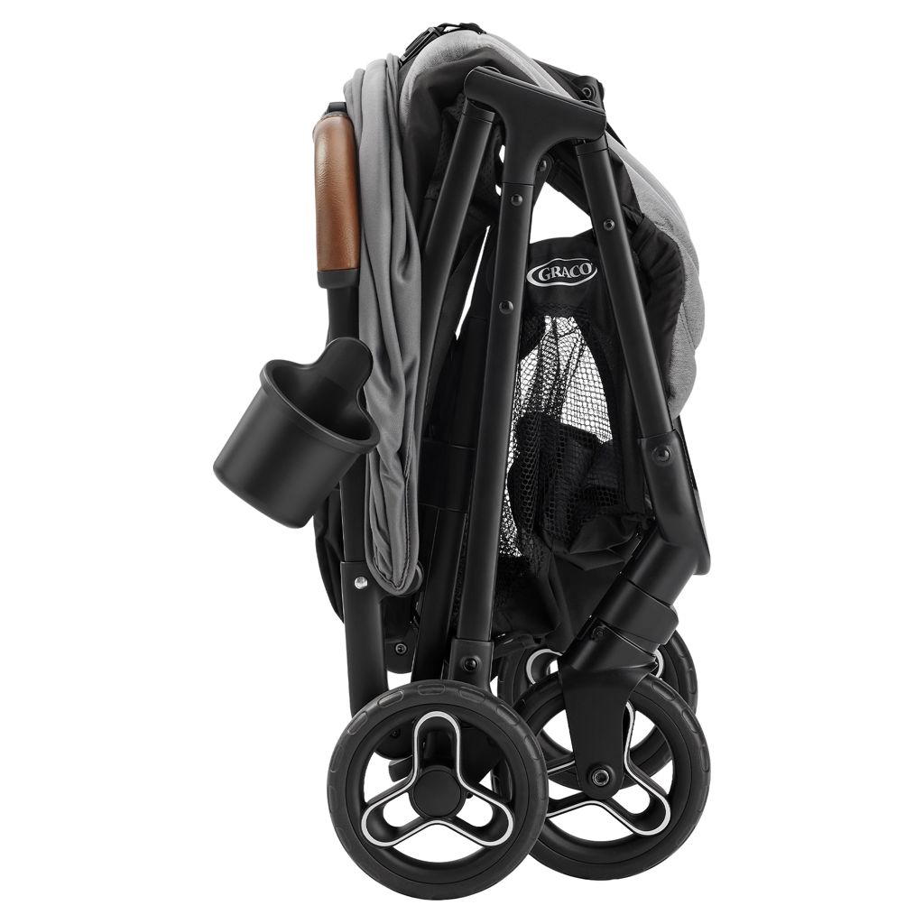 The Graco Ready2Jet Compact Stroller features an automatic, self-fold with one-hand activation that makes it easy to fold and unfold, while its self-standing fold keeps your hands free.