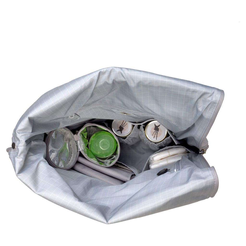 The zipper on the entire side allows quick access to the contents. A wet-linen compartment in the front, a zippered compartment in the back and practical accessories make it the ideal bag for parents.
