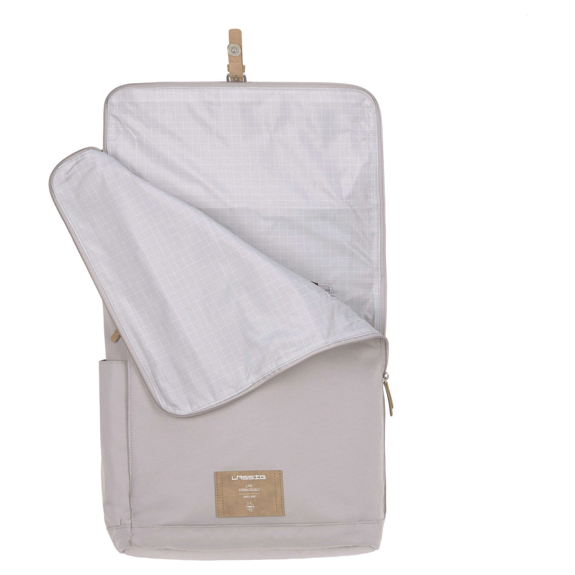 The durable, vegan changing backpack is very versatile with its roll-top opening. If you need to add something, just unroll the backpack, and in a flash you have enough room for larger items. The volume of the backpack can be increased from 17.5 to 21.8 liters. When rolled up, it can be closed with a simple magnetic closure.
