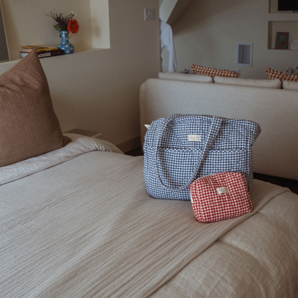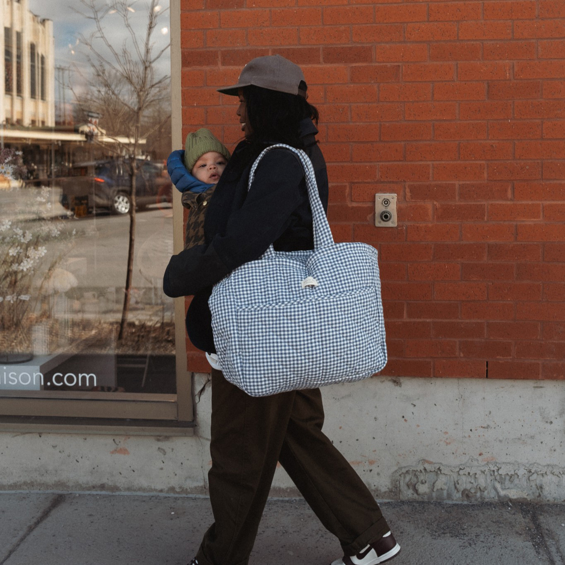 Our bestseller made of an organic gingham cotton. Here is THE bag to carry everything you need for you and your minis.