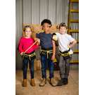 Includes: 1 Phillips Screwdriver no.1, 1 Phillips Screwdriver no.2, hammer, tape measure, bar clamp, file, handsaw, ruler, safety goggles, tool belt.