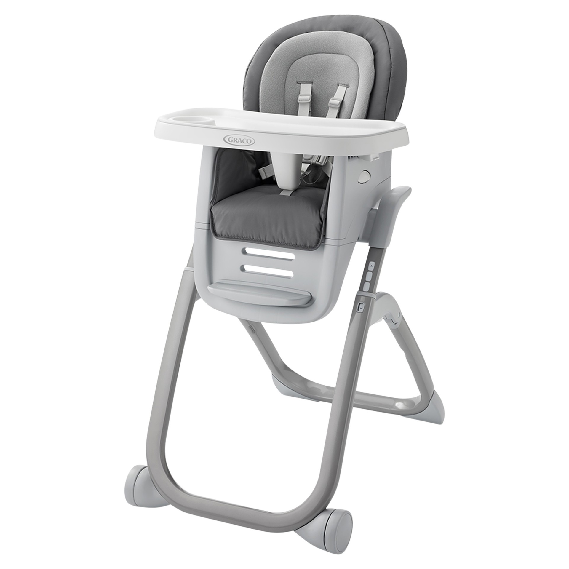 Its modern, fresh design includes soft fabrics, a cozy seatpad and sleek, dishwasher safe compact tray insert for the easiest cleanup possible.