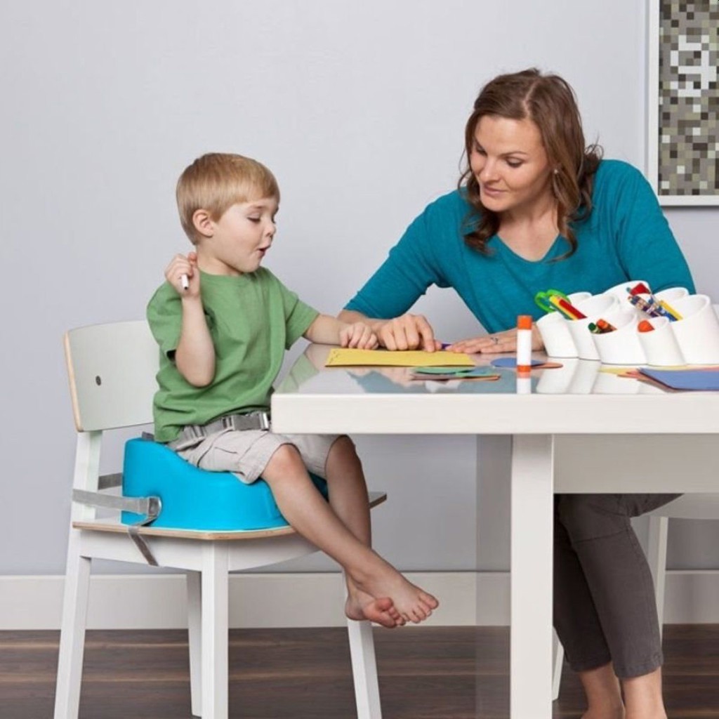 The Bumbo Booster Seat is designed to elevate toddlers so they can sit comfortably at the table.