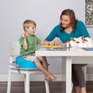 The Bumbo® booster seat is soft enough to provide comfort but sturdy enough to elevate your toddler to sit more comfortably at the table.