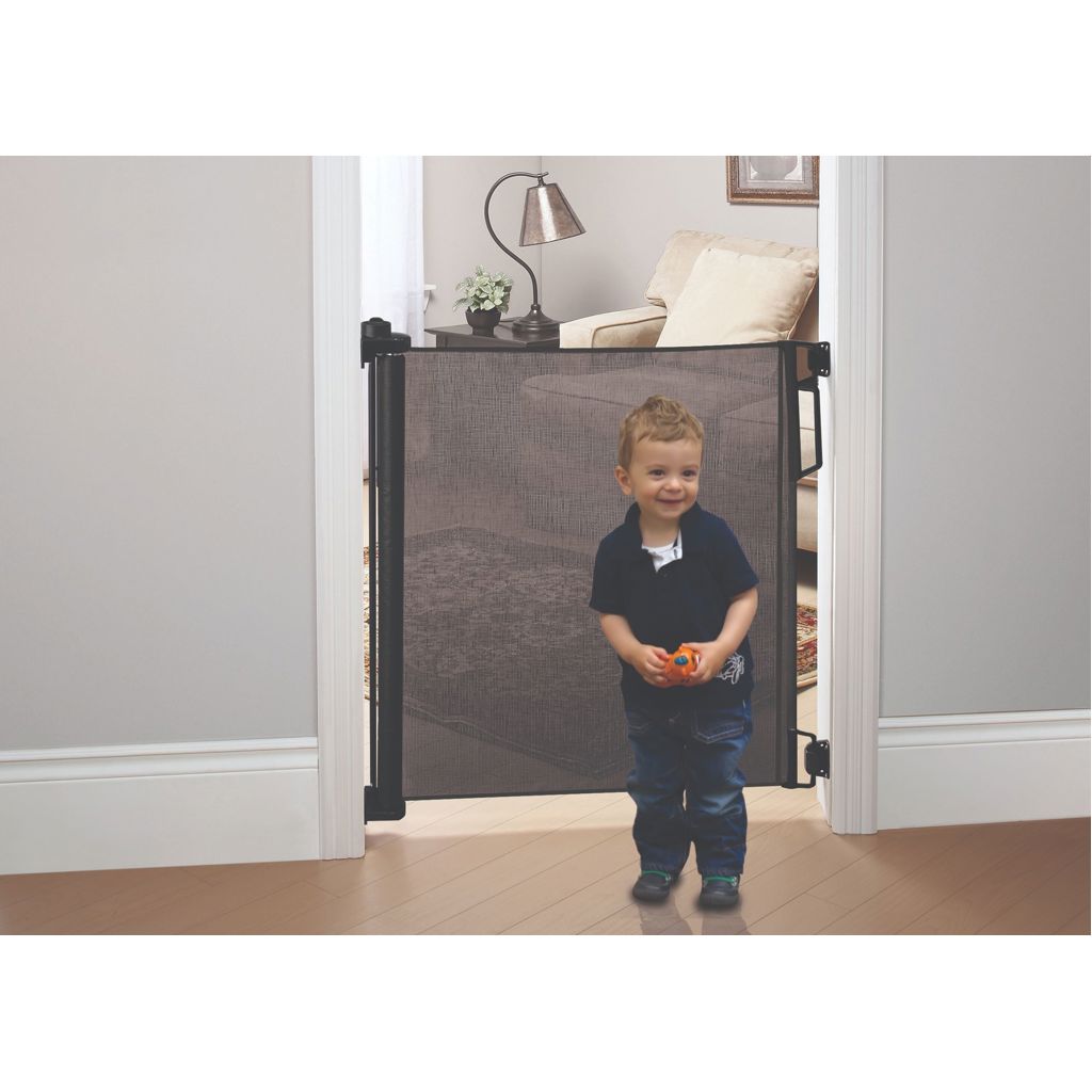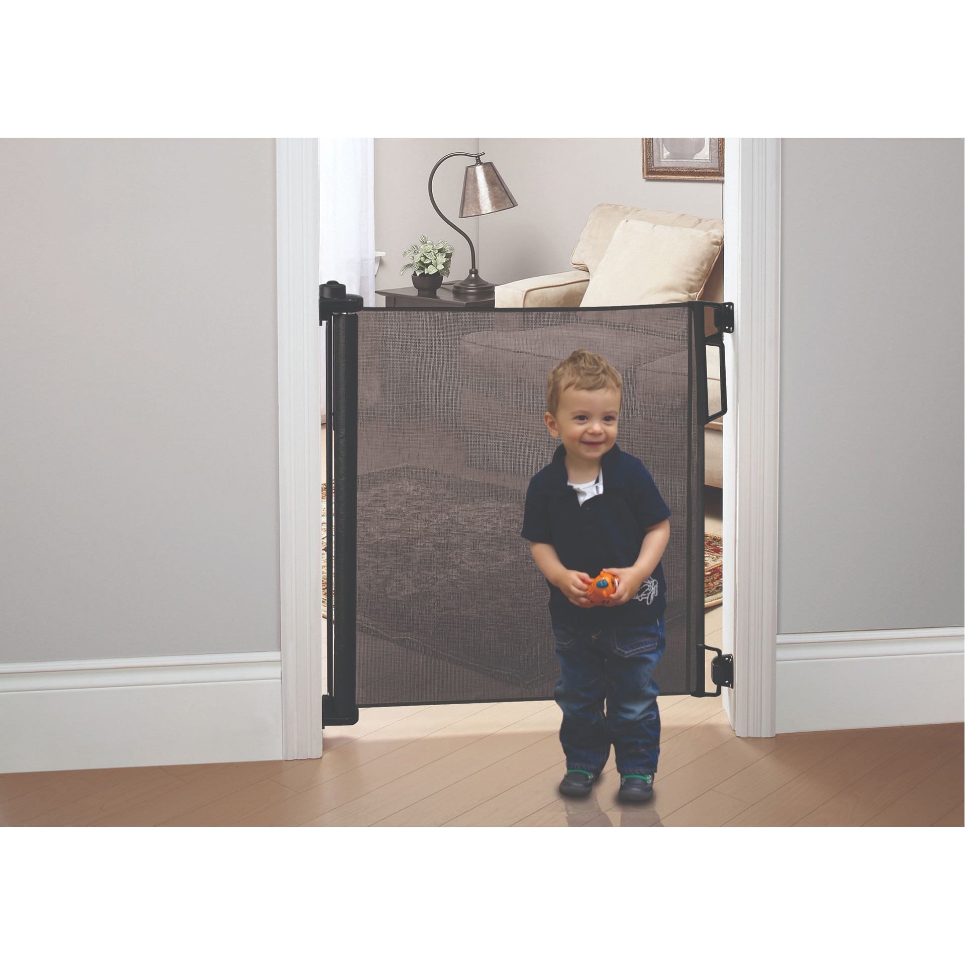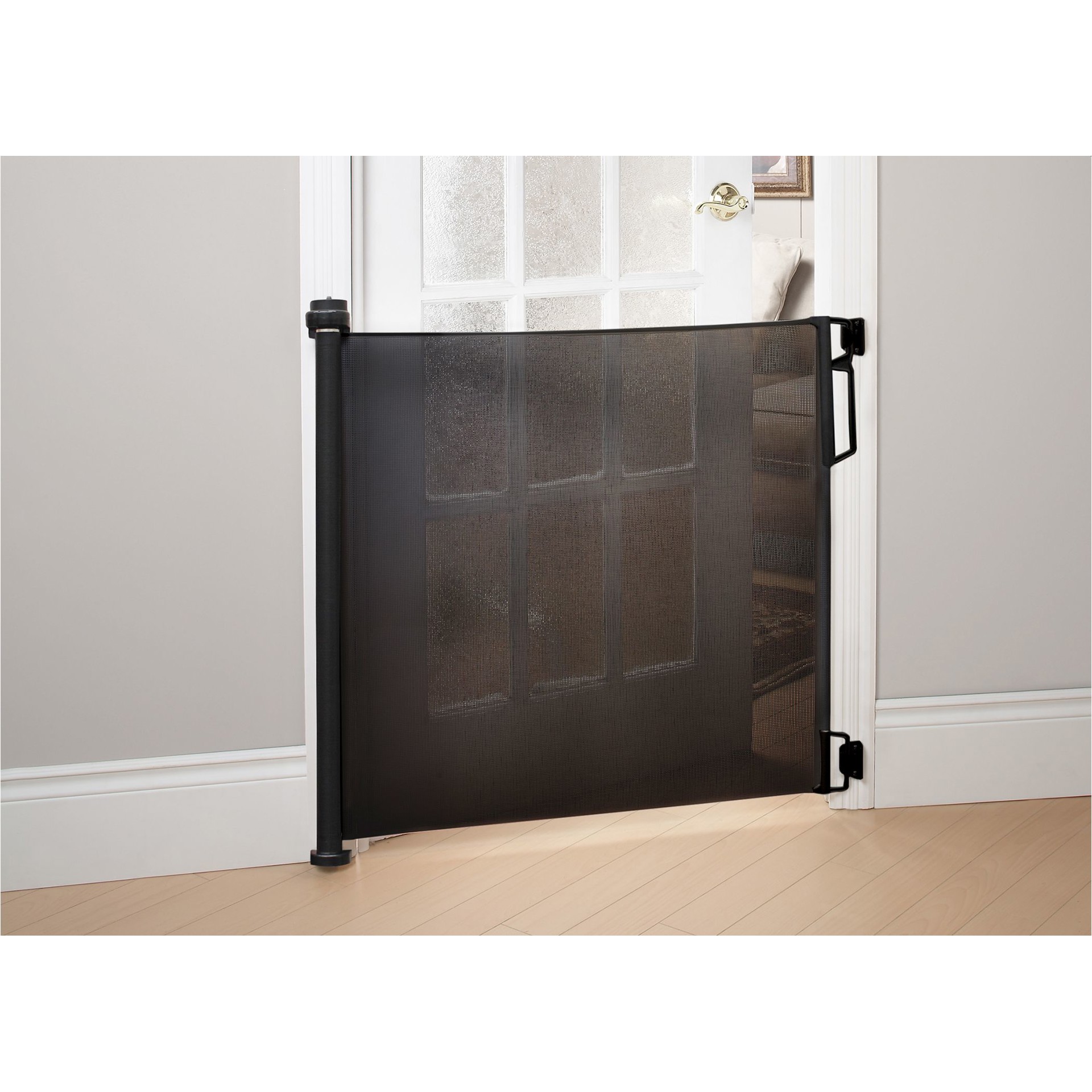 Includes 2 sets of mounting brackets for convenient relocation. Sturdy and durable mesh barrier with option of an inside frame or outside frame mount Space efficient - retracts out of the way when not in use