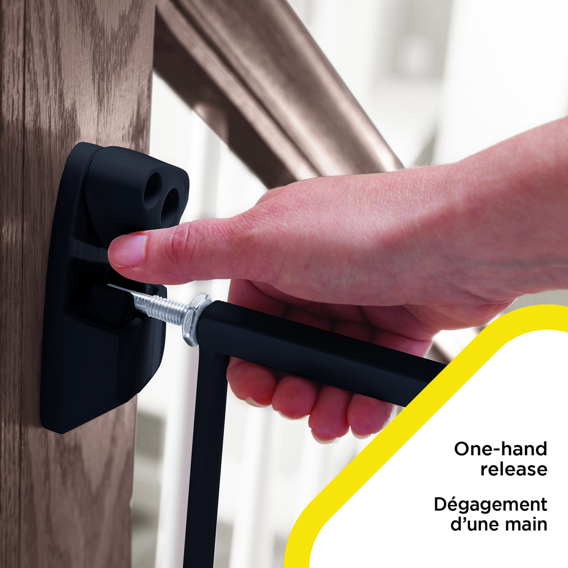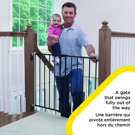 Easily open the gate by rotating the release lever and lift to swing out of the way. The sturdy hinges allow the gate to be set to swing open in one direction only for top of stairs use, or in both directions which is perfect for between rooms. This ability to choose provides you with added convenience and protection.