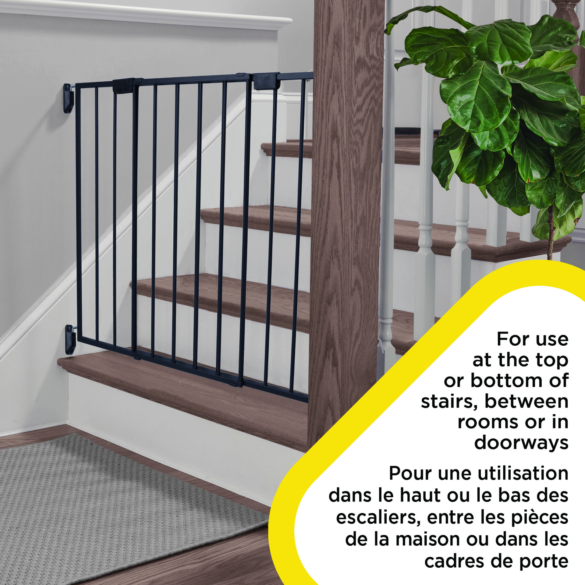 As a hardware-mounted gate, this gate is ideal for use at top of stairs, but can also be used at the bottom of stairs and between rooms for maximum versatility.