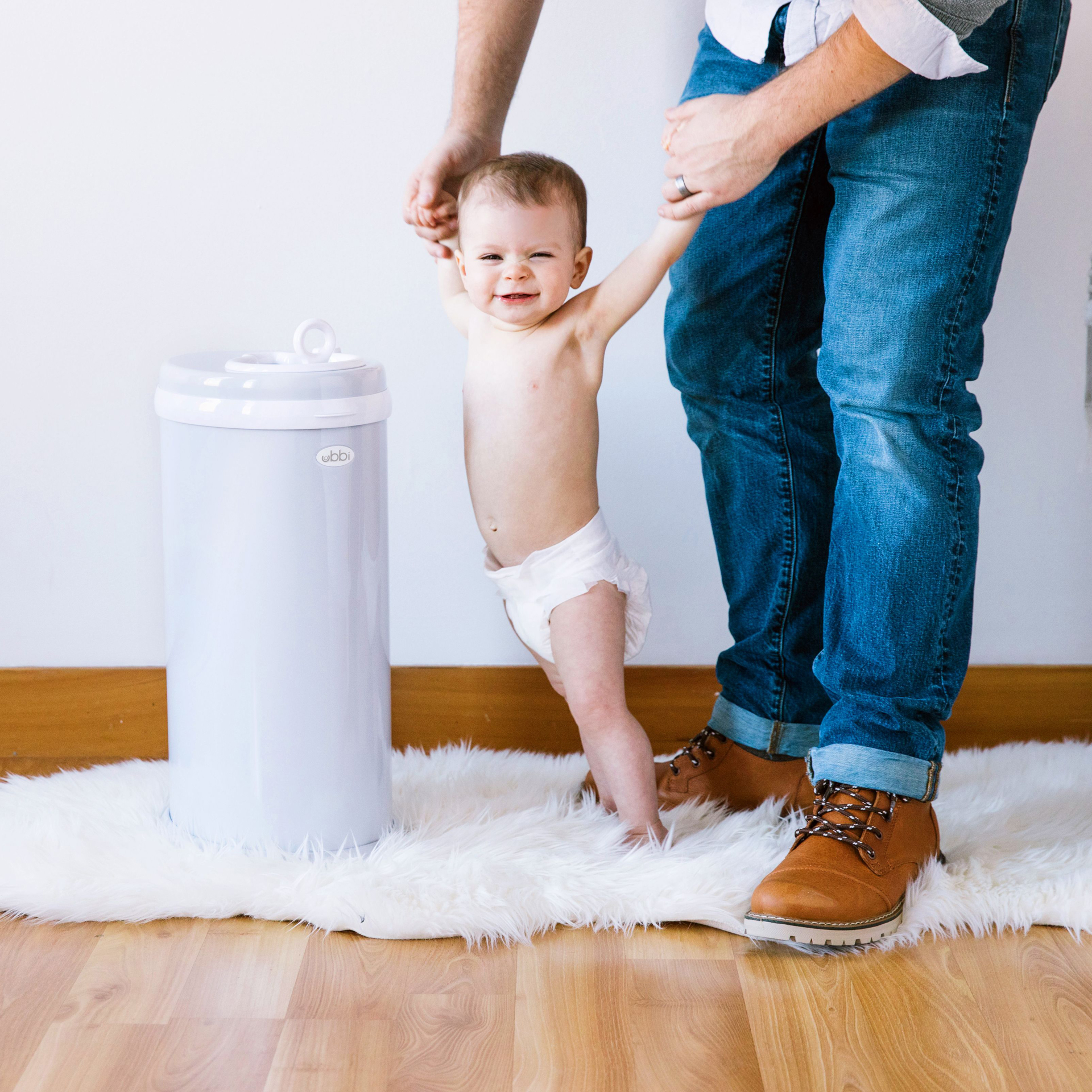 The Ubbi diaper pail is made of powder-coated steel to achieve maximum odor control. It is equipped with rubber seals that are strategically designed to lock in odors as well as a sliding lid that minimizes air disruption, keeping the smell inside the pail.