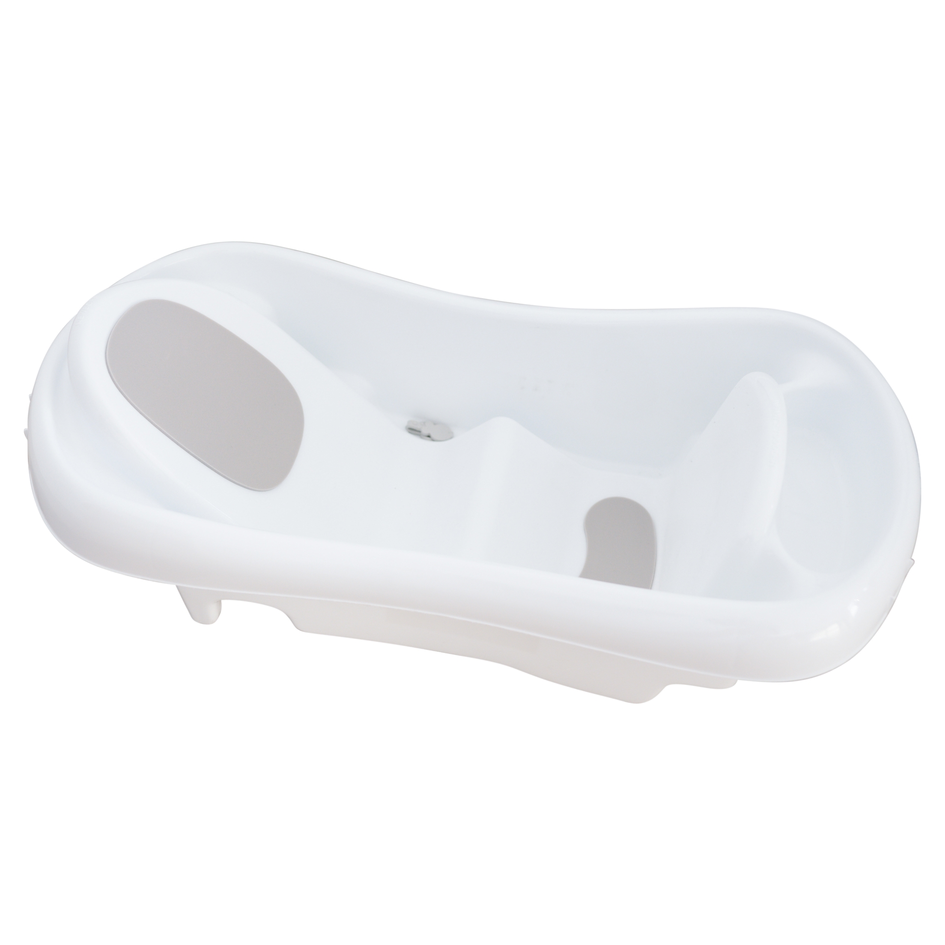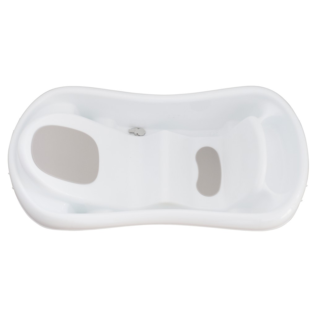 GROWING BABY BATH: Deep ergonomic tub design with pad to help hold growing baby better while bathing