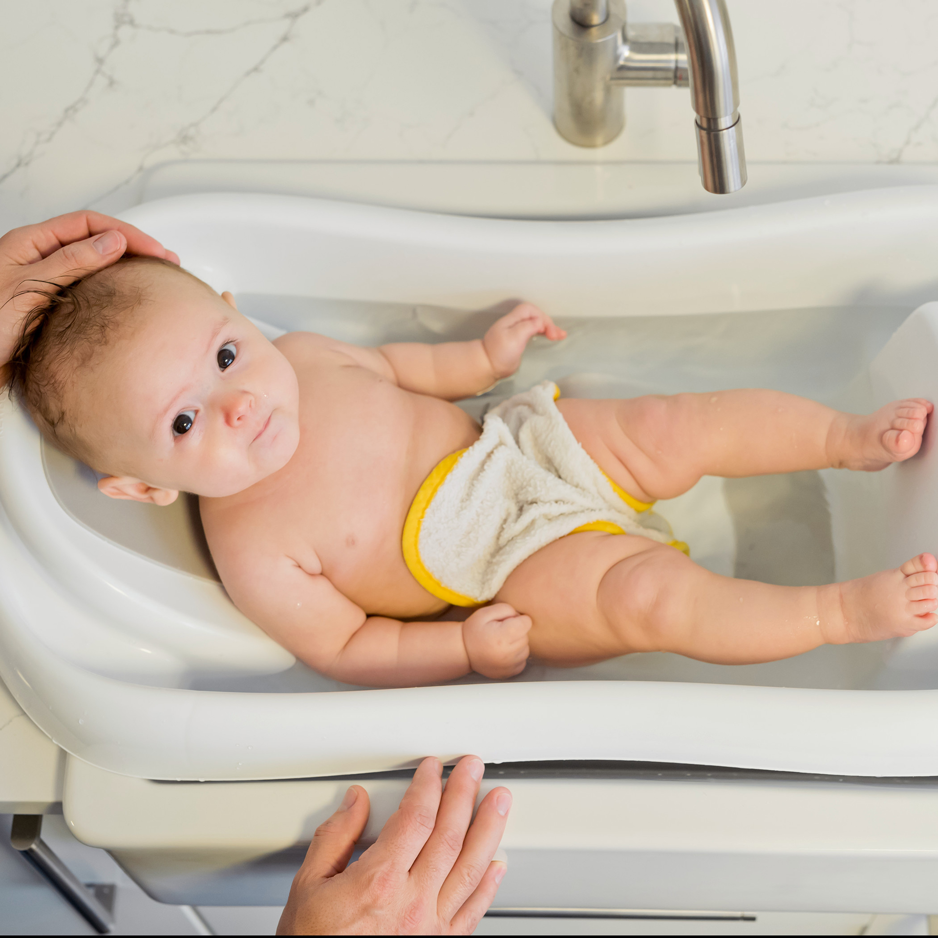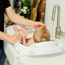 NEWBORN BATH: Mesh sling provides extra support and comfort during first bathtimes