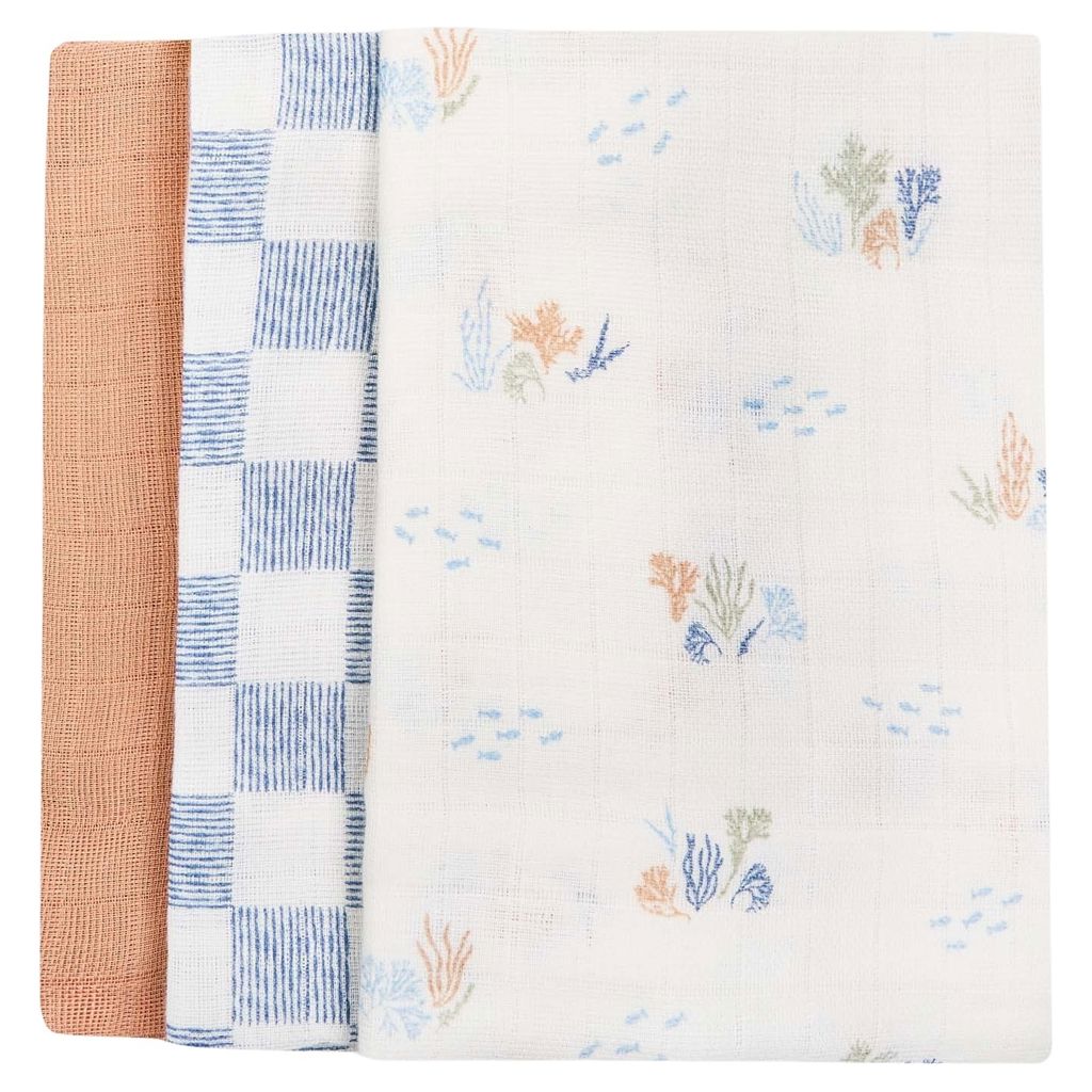 Organic Baby Muslin Squares Set of 3 - Coastline