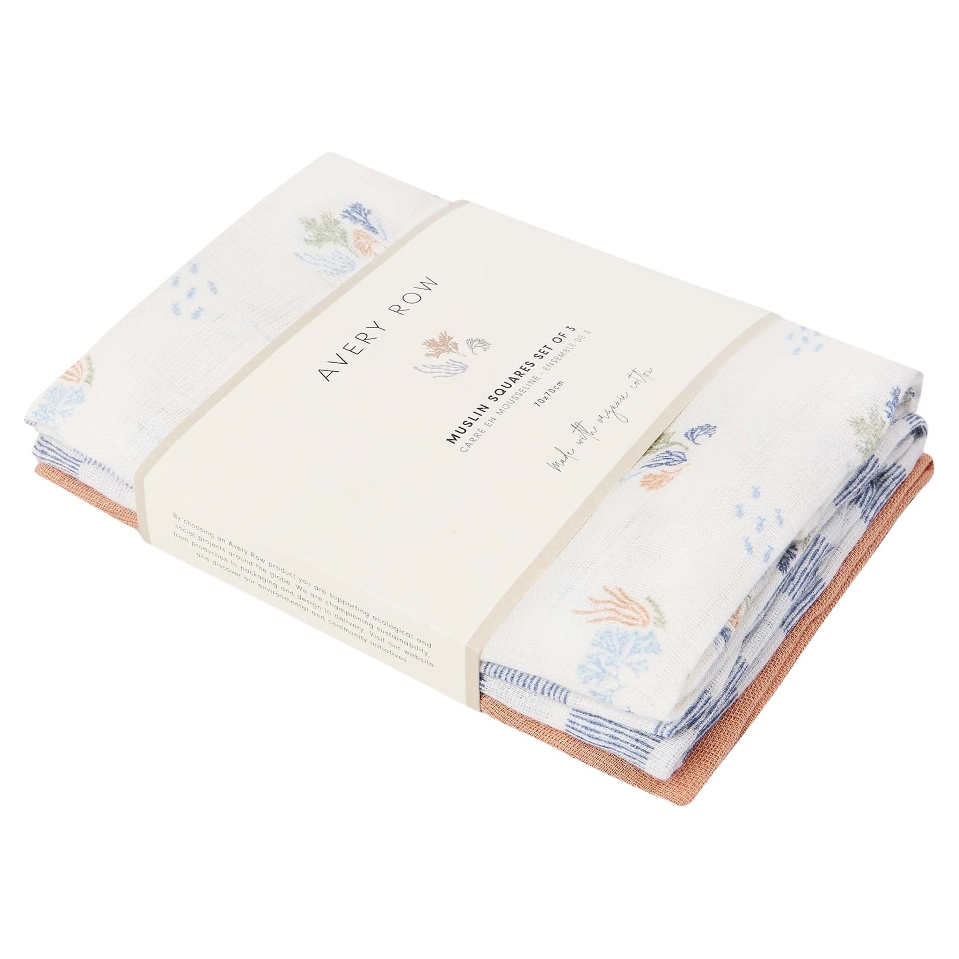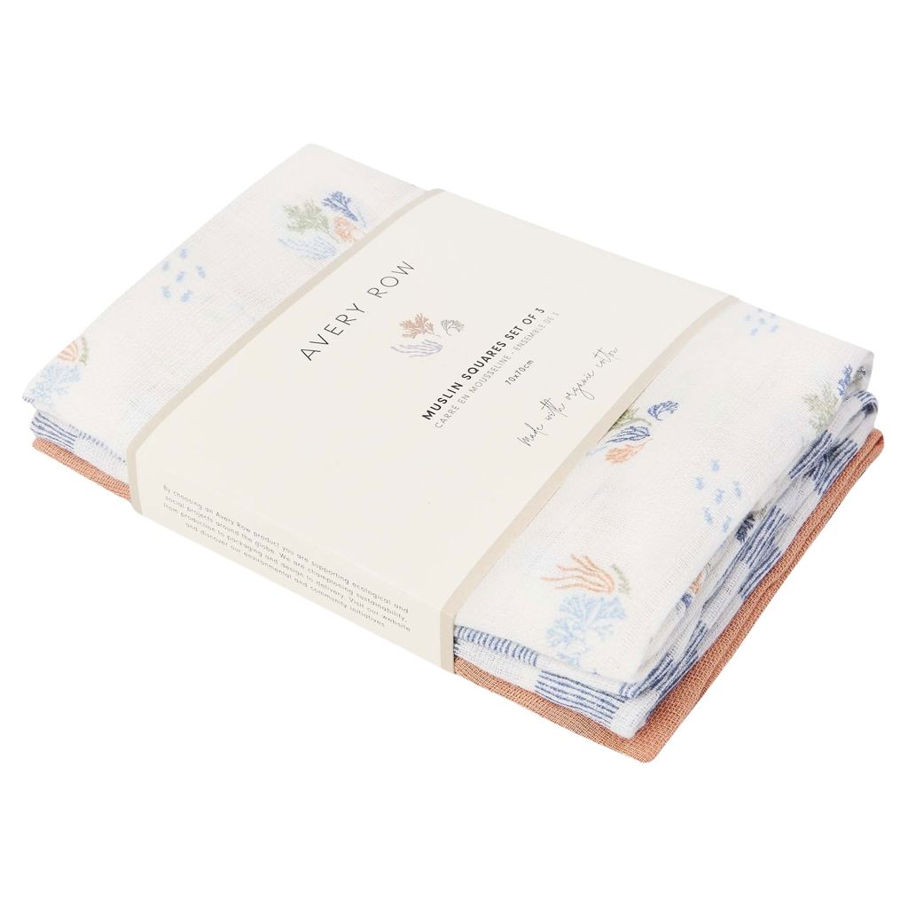 Organic Baby Muslin Squares Set of 3 - Coastline Avery Row MSQCOA