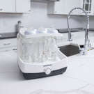 Its push button is easy to use and allows you to choose from four functions: (sterilizer & dryer, sterilizer only, dryer only, or storage system functionality!). BPA-FREE; 1-year limited warranty.