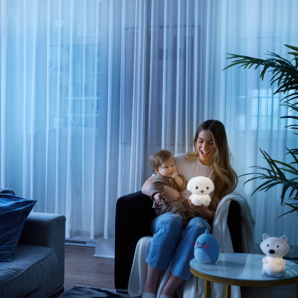 You want to set the light mode dim white to warm white or warm white to color transition? Nelly the pup can do that too. Want to create a serene atmosphere in front of the fireplace? Perhaps, throw a romantic party with your better half or put your little one to sleep playing the most dreamy lullabies? Nelly is as good of a dancing pup as is a gentle soother buddy!