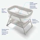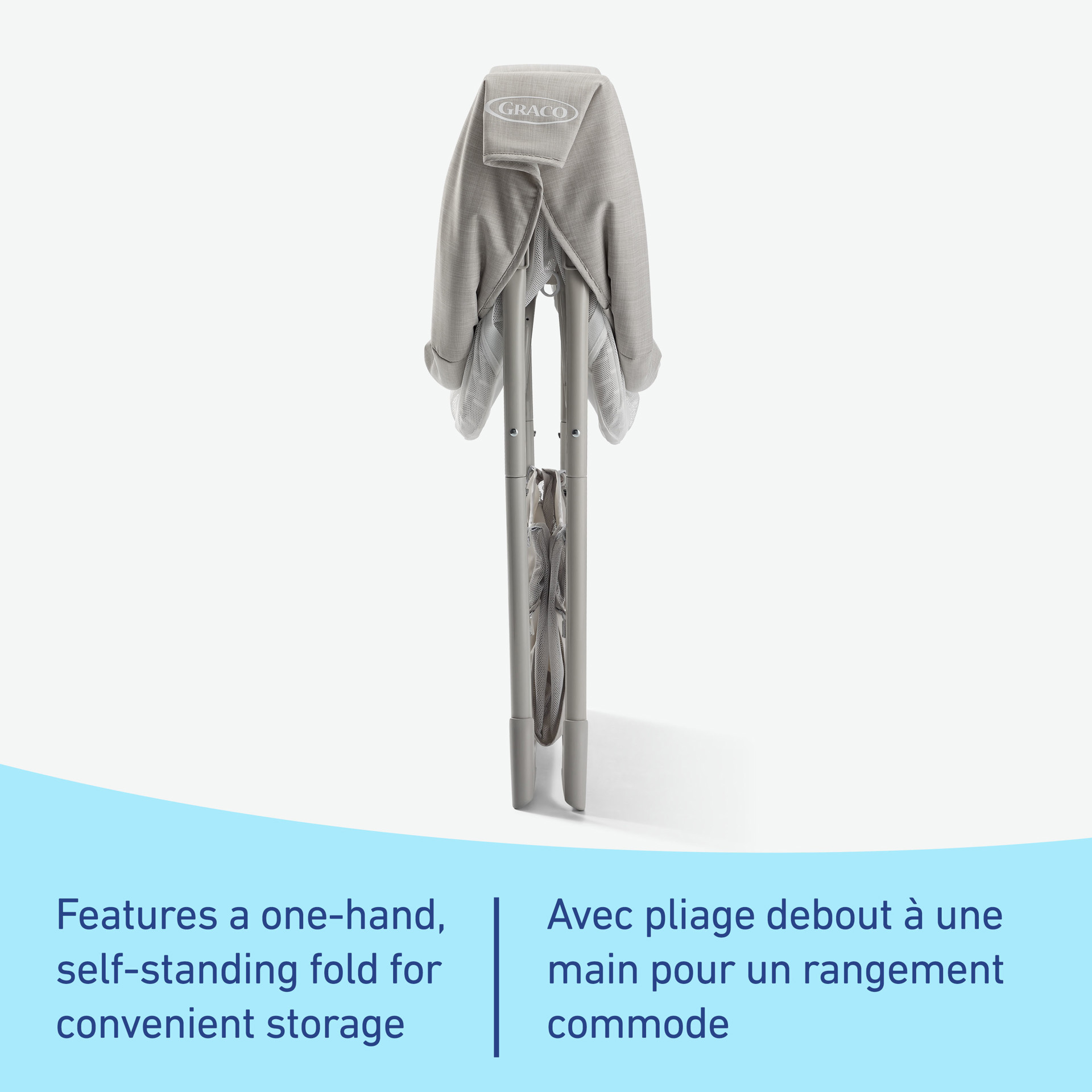 Featuring a self-supporting one-hand fold for easy storage, the bassinet folds compactly to fit the included carry bag, allowing you to take it with you on trips near and far.