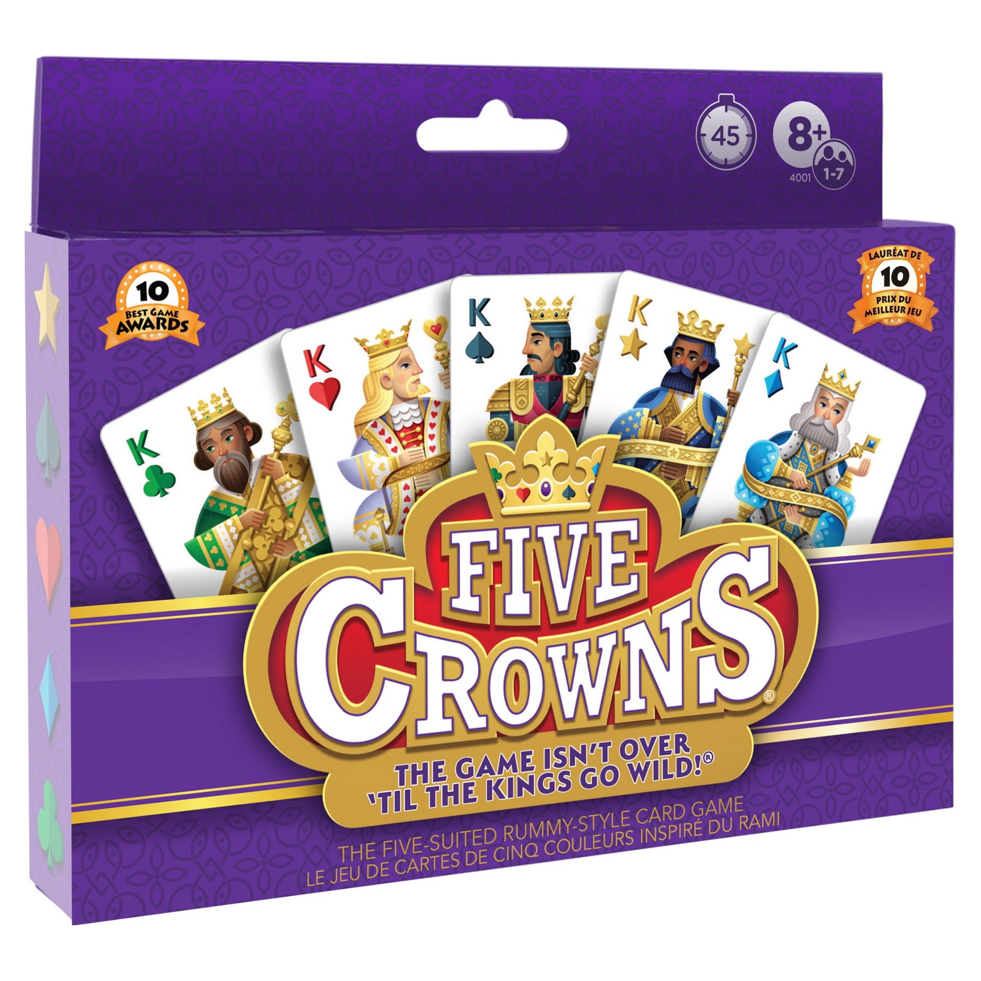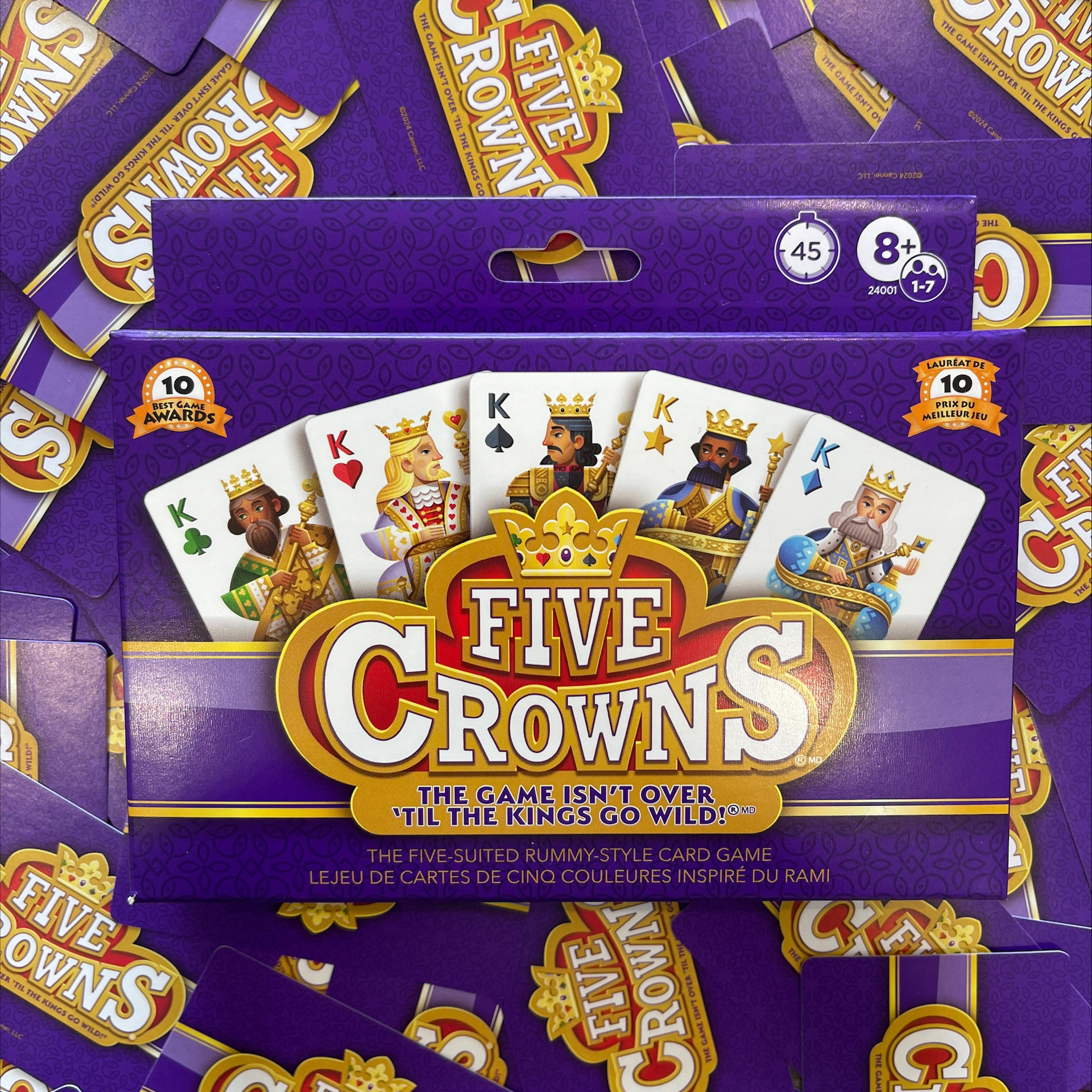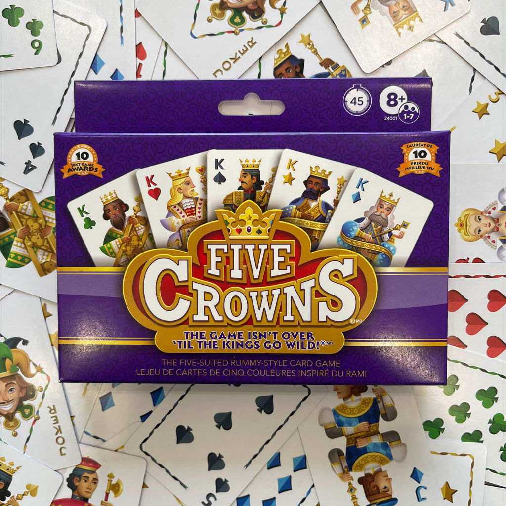 Five Crowns is a five-suited rummy-style card game designed for a wide range of card players. This award-winning classic is a fast-paced favorite featuring a unique double deck with five suits: spades, clubs, hearts, diamonds, and stars.