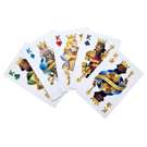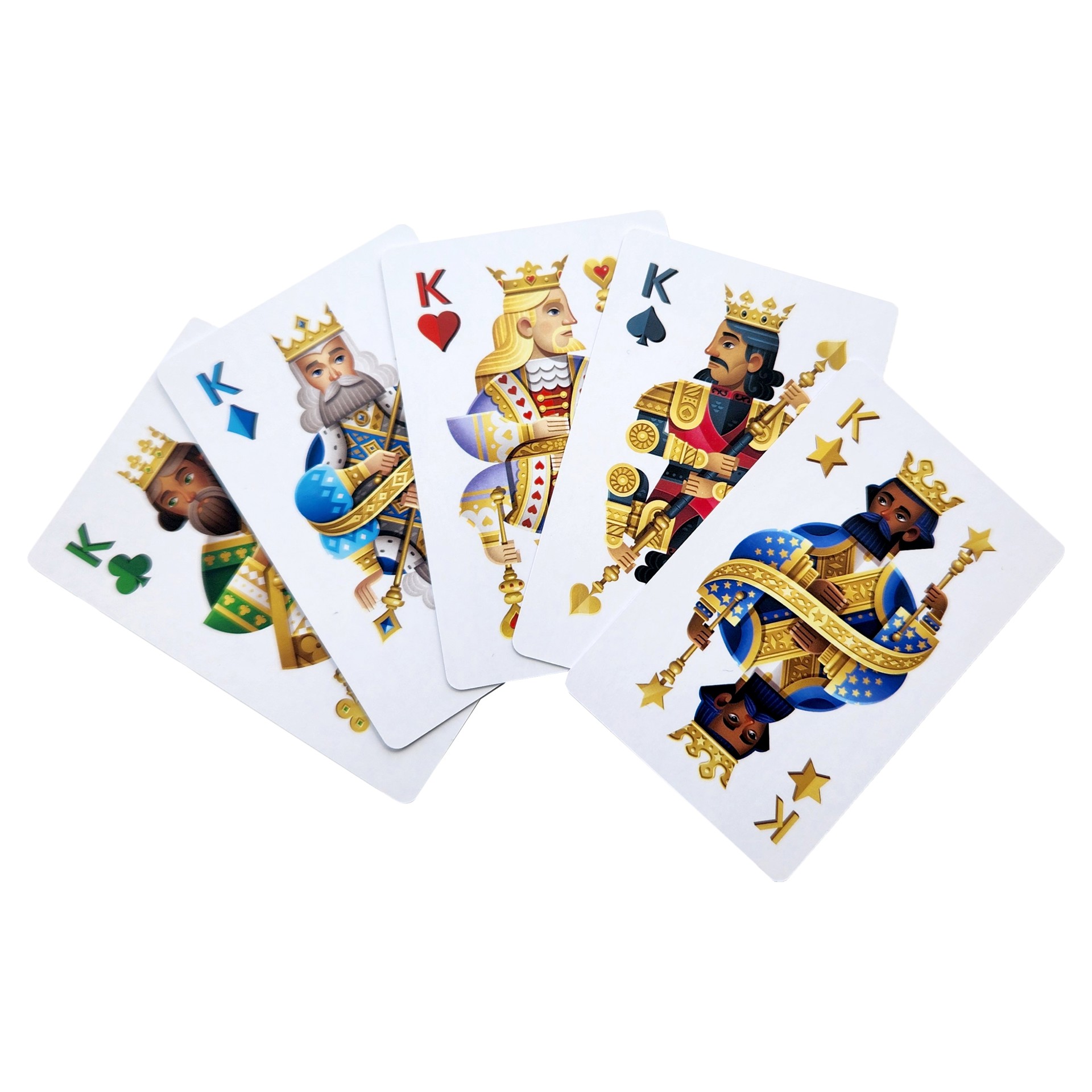 The special deck makes it easier to arrange your entire hand into books and runs,  but watch out for the rotating wild card that keeps everyone on their toes! The game begins with three cards, and 3s are wild. The next round has four cards, and 4s are wild,  and so on, until the Kings become wild.