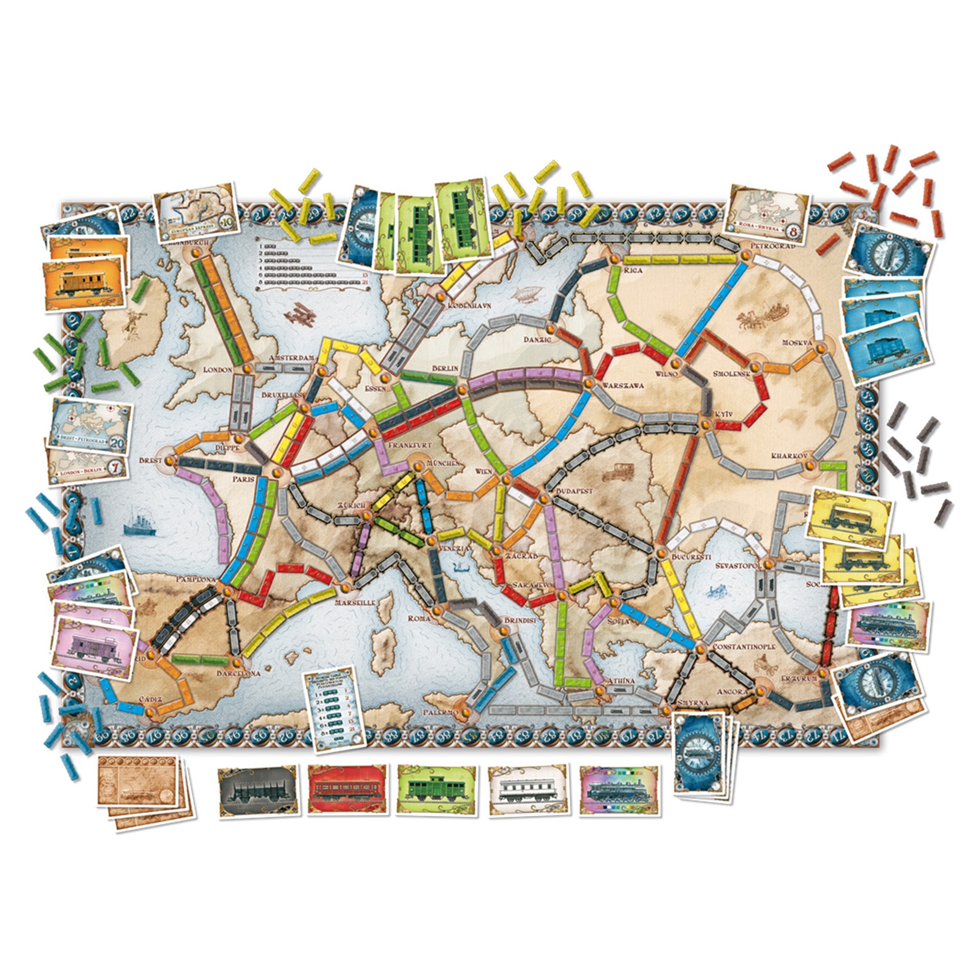 In Les Aventuriers du Rail Europe, set off on an assault on the European rail network. From the ramparts of Edinburgh to the docks of Constantinople, from the dusty alleys of Pamplona to the frozen platforms of St. Petersburg's main railway station.