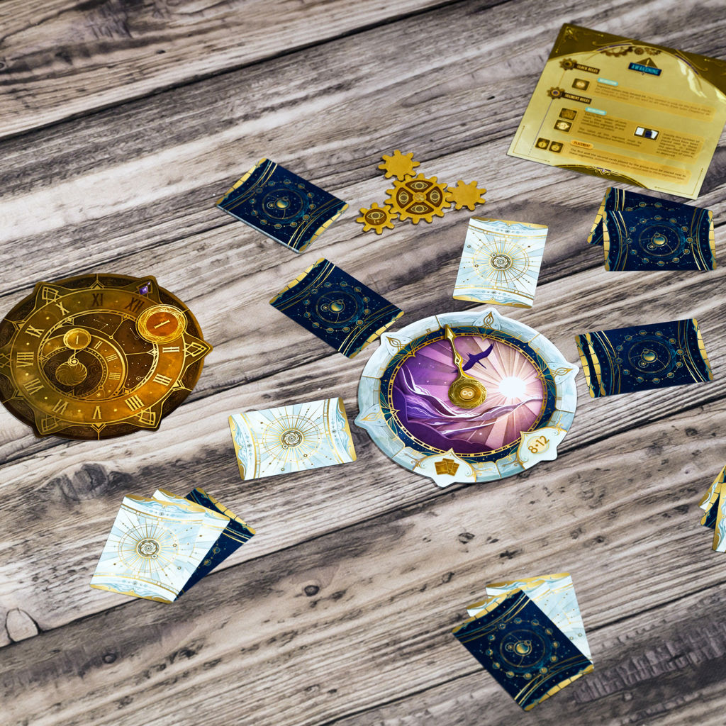 To succeed, players must strategically play 12 face-down cards around a clock, following the special rules of each challenge, all without speaking once the cards are placed.